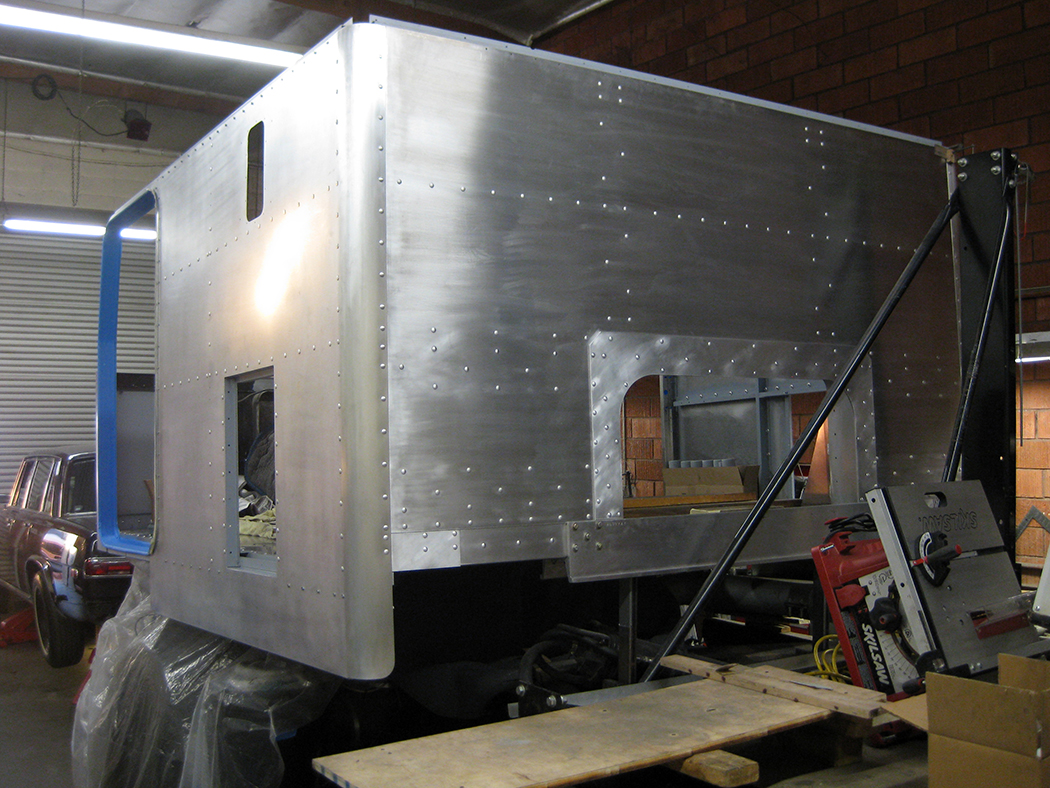 Realizing quickly that the cab was in bad shape, he called on a friend who is a master craftsman that specializes in metalwork and fabrication on high-end restorations – Sebastian Dominguez of Sebastian Dominguez Coachwork Restoration in Bell Gardens, CA. Paul thought Sebastian might help with a few pieces, but after measuring his door to see if the truck would fit in his shop, he told Paul to bring it in. The rig spent three years there, getting new doors, floors and body panels – the entire aluminum cab was rebuilt! The fiberglass roof cap is still original, but a lot of work was done to it, as well. Much work on the frame was done, too, including replacing all the cross-members and every bracket. And, like when the drivetrain was being rebuilt, Paul was there every step of the way with Sebastian. This is not a store-bought rig – Paul made sure he was involved with everything.