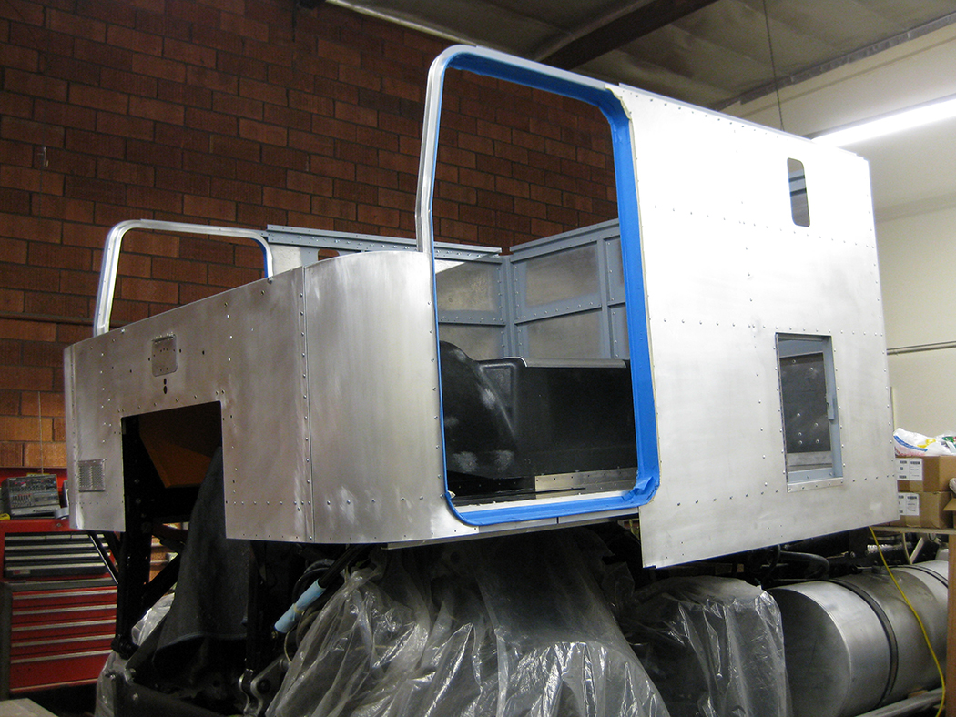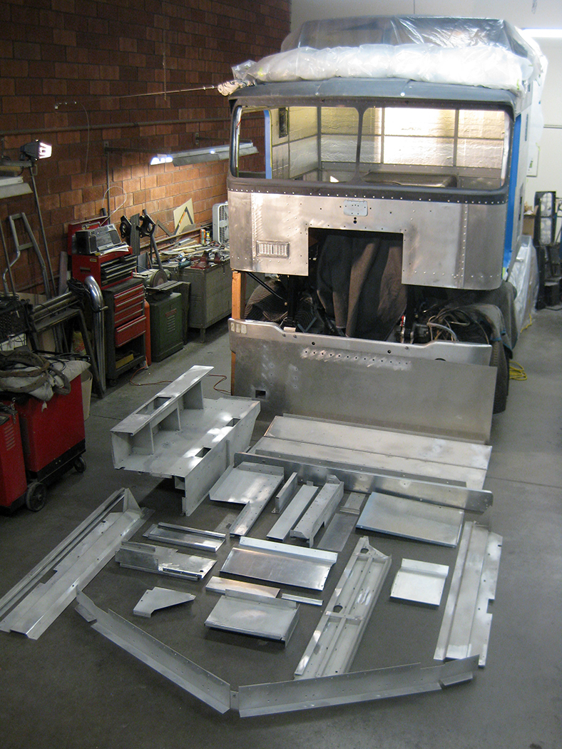 Realizing quickly that the cab was in bad shape, he called on a friend who is a master craftsman that specializes in metalwork and fabrication on high-end restorations – Sebastian Dominguez of Sebastian Dominguez Coachwork Restoration in Bell Gardens, CA. Paul thought Sebastian might help with a few pieces, but after measuring his door to see if the truck would fit in his shop, he told Paul to bring it in. The rig spent three years there, getting new doors, floors and body panels – the entire aluminum cab was rebuilt! The fiberglass roof cap is still original, but a lot of work was done to it, as well. Much work on the frame was done, too, including replacing all the cross-members and every bracket. And, like when the drivetrain was being rebuilt, Paul was there every step of the way with Sebastian. This is not a store-bought rig – Paul made sure he was involved with everything.