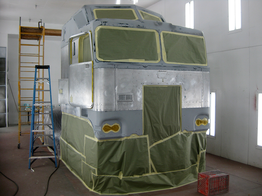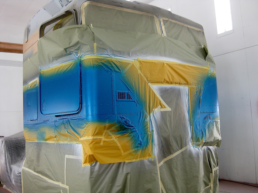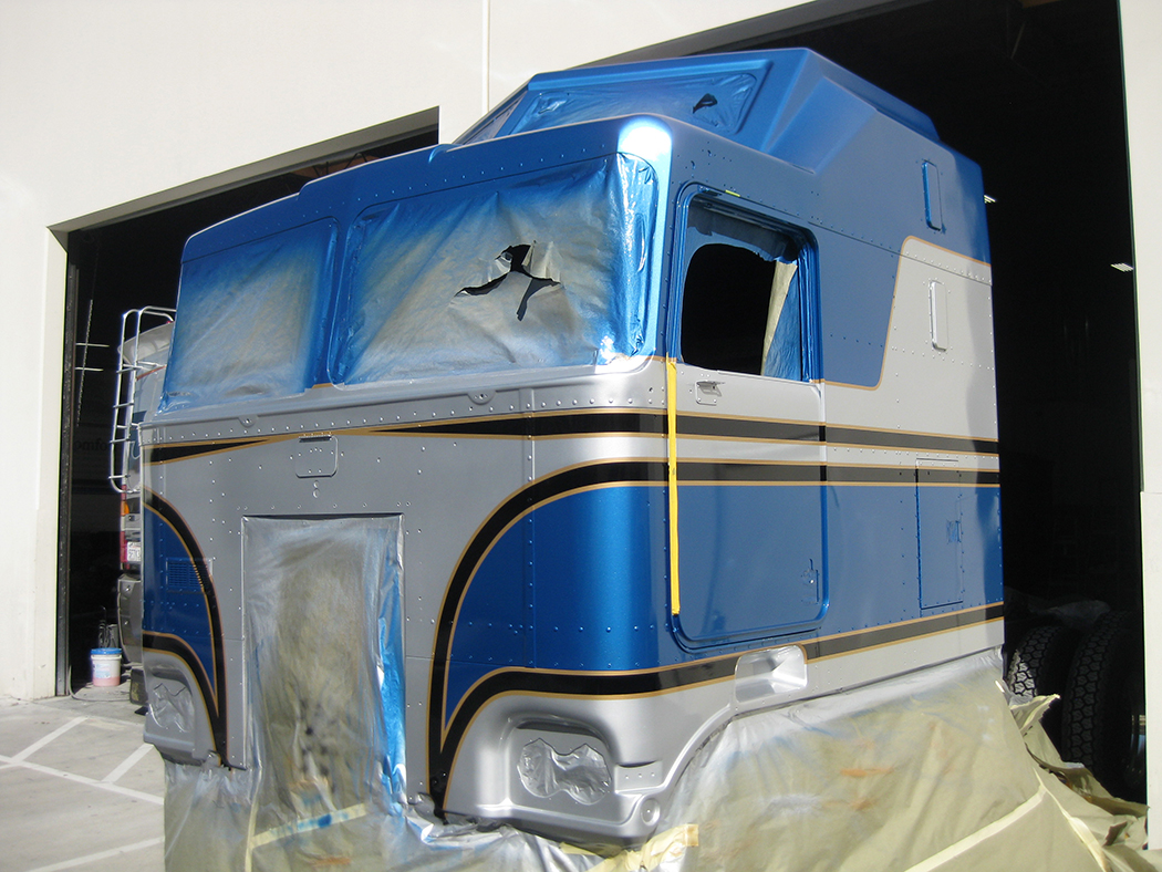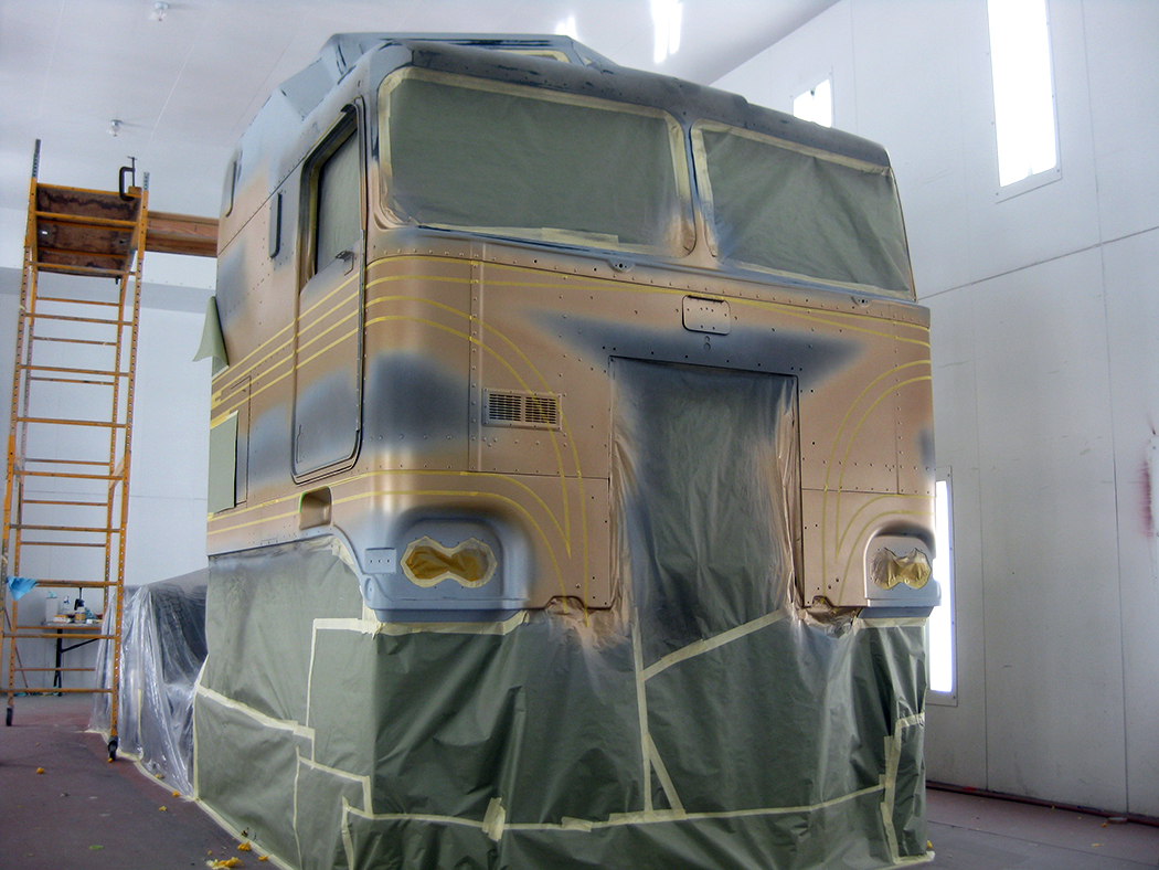 Now it was time for paint. Paul did not want to spend a fortune, so most of his restoration friends were out of the running. Not knowing where to take it, while sitting in L.A. traffic one day, a flashy motorhome pulled up next to him. This gave Paul an idea – take it to someone who paints large RVs. He motioned for the RV driver to roll down his window and then asked where he got it painted. The driver told him where, and Paul immediately went to see them. The place was called Final Touch Coach Works in Valencia, CA, and it was not far from Paul’s home. Meeting with Joel Forte, the two formulated a plan that would allow Paul to tape off the stripes himself and be a part of the entire painting process.
