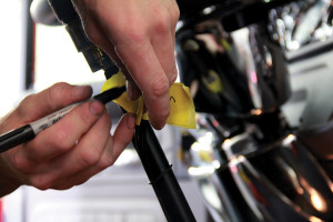 STEP 2: Using masking tape and a permanent marker, label the air lines to match the marking on the shifter – “S”, “SP”, “P” (on an 18-speed). Then, using a 3/4” wrench, loosen the jamb nut under the shifter knob and thread the shifter knob off.