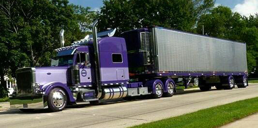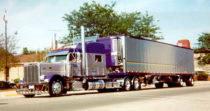 In 2001 Brian purchased a new two-tone purple Peterbilt 379 with thin yellow and blue stripes and a matching reefer trailer, and in 2002 he bought a sharp yellow and green 2000 Peterbilt 379 from Ryan Stepp. Taking both of these units to the 2002 SuperRigs show, both were chosen to be featured in their 2003 calendar. Later, after running it a million miles, Brian redid the purple Pete and it made the calendar a second time (2011). Unfortunately, tragedy struck in 2013 when their shop, just behind their house, caught fire and completely burned with five of their trucks inside.