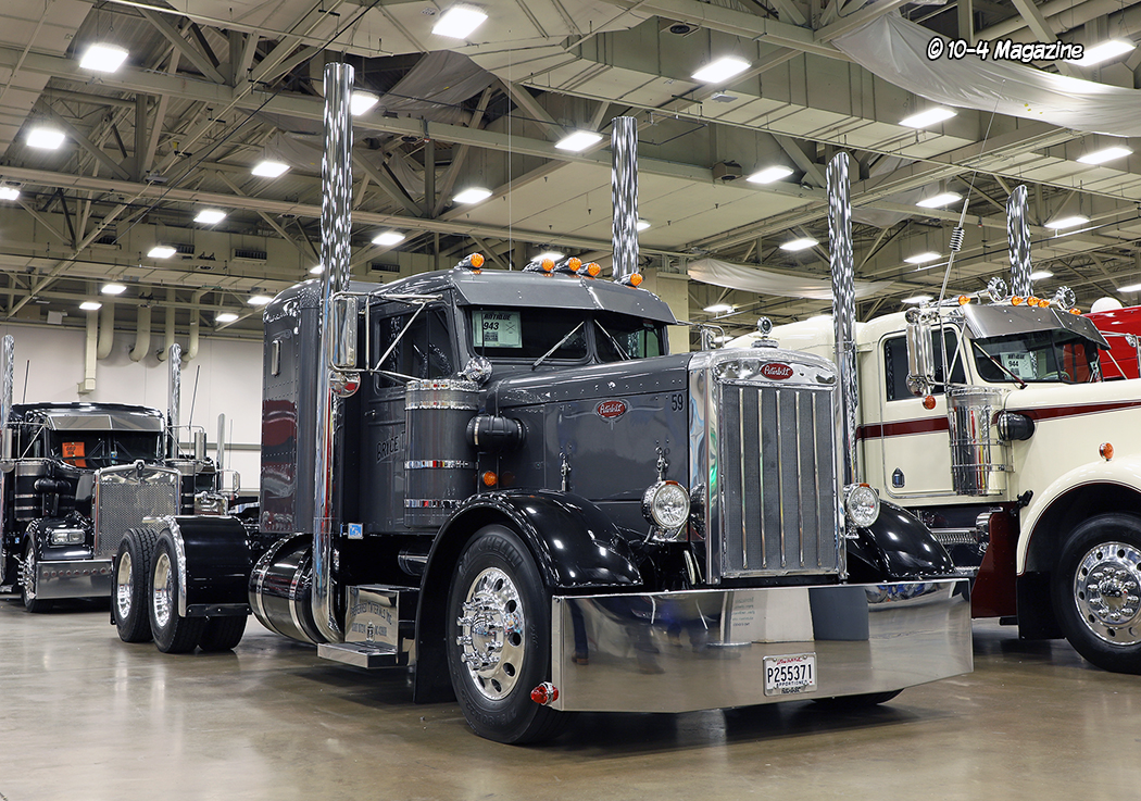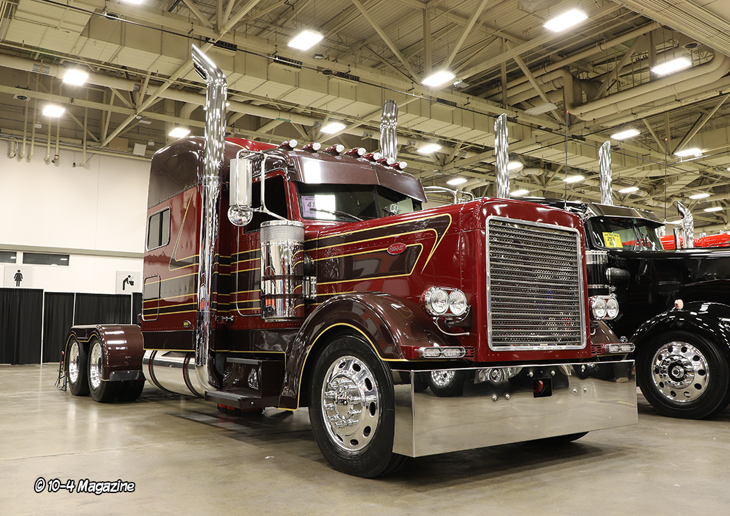 A few more of our favorites included Mike Shantz’ dark brown 2017 KW W900L with gold stripes, Dennis & Ila White’s maroon 1987 Pete 359, and Kary Bryce’s latest toy – a super-clean dark gray and black needlenose Peterbilt. Another standout was a custom 2006 Peterbilt 379 owned by Greg Sutton of BBS in Texas. Featuring a sharp maroon, brown and gold paint job, along with a custom interior, this truck was turning heads all weekend. But our favorite had a lot of sentimental value, too – a bright red 1985 Peterbilt 359, hooked to a muralled trailer, that was once owned by our good friend Jerry Jeffries of Double JJ Enterprises. The new owners, James and Cynthia Hodge, bought the truck and trailer to use it as their ministry to spread the gospel (look for a full feature of this rig in a future issue of 10-4).