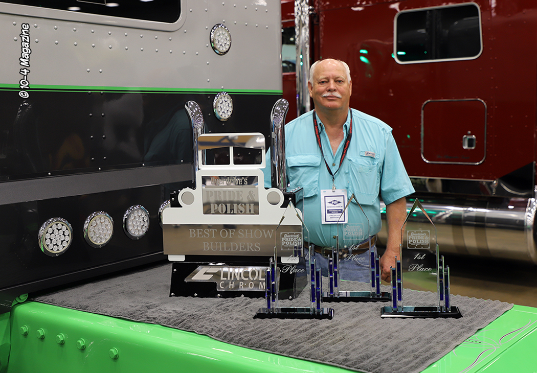 BUILDER’S CLASS: 1st Ray Thompson of Campbell, MO – 2000 Silver/Gray/Green Peterbilt 379; 2nd Greg Sutton/BBS Truck of Texarkana, TX – 2006 Maroon Peterbilt 379; 3rd Scott Vieth/RDDP of Wichita Falls, TX – 2018 Silver Peterbilt 379.