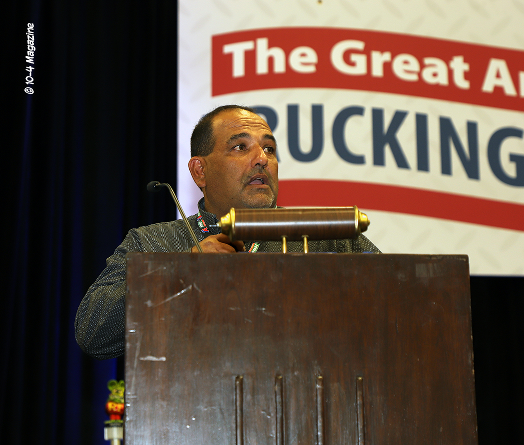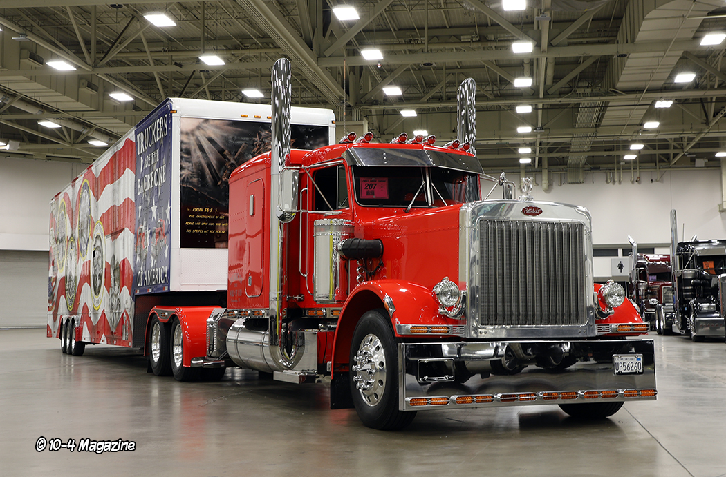 Come Saturday morning, it was time to announce the winners. But, before that happened, a special tribute was done for our co-founder Erik Sieben, who passed away on August 9. Jerad Wittwer of PDI had our longtime friend and past cover trucker Jeff Botelho flown in from California early that morning to say a few words about Erik and what he meant to the truck show community and trucking, in general. It was a touching few minutes. Jeff, not known for being a very polished public speaker but rather a frank and direct talker who “retired” from truck building and attending truck shows some ten years prior, did a fantastic job. After a moment of silence for Erik, we handed out some “10-4 Bucks” ($104 cash) in his honor. Jeff spent the rest of the day hanging out in our booth and walking the show, meeting new friends and getting reacquainted with old ones. We would like to personally thank Jerad, Jeff and everyone at GATS for working so hard to make this wonderful tribute happen.