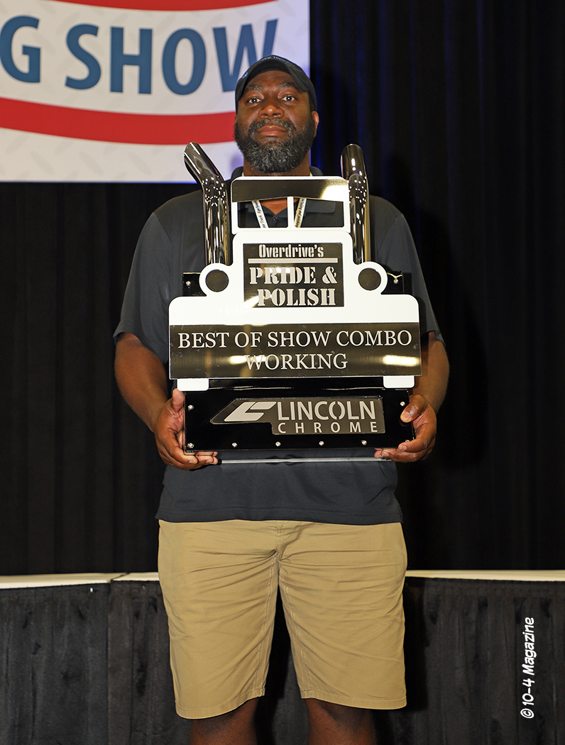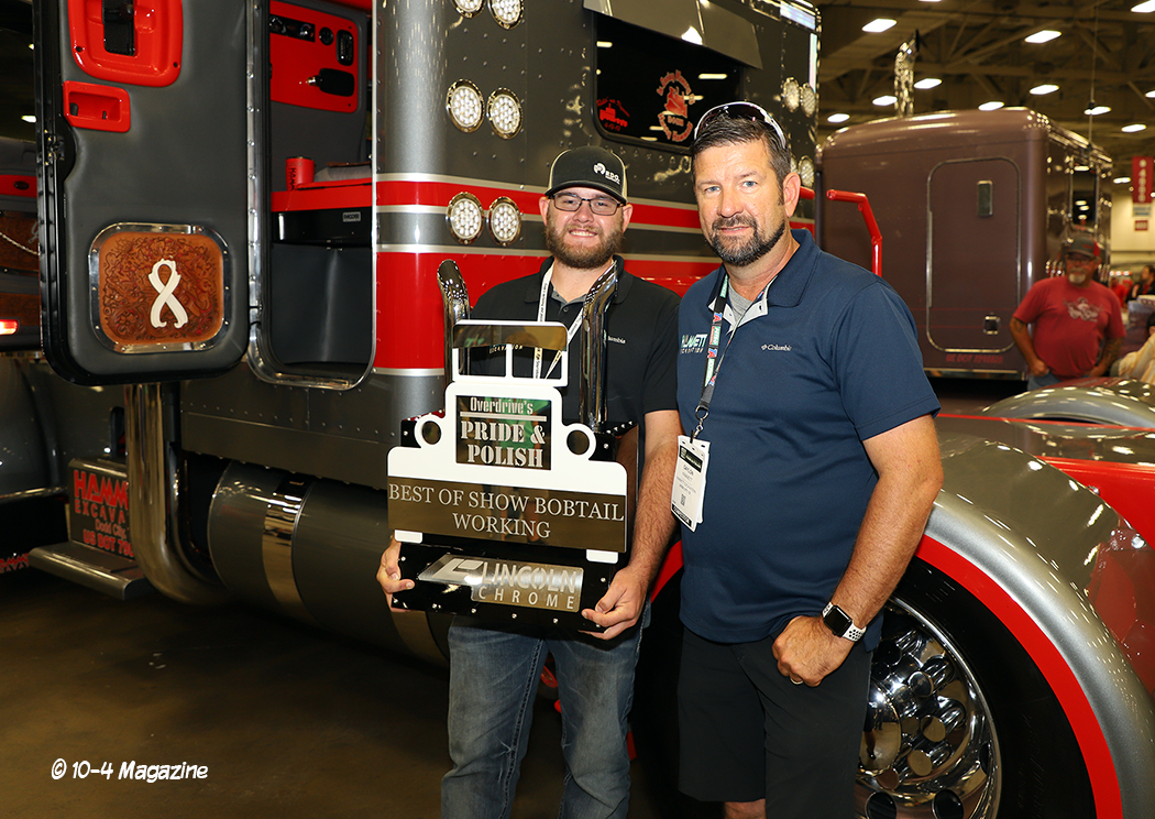 ENGINE (WORKING TRUCK): 1st Eric Turner, Sr. of Ellenwood, GA – 2015 Blue Peterbilt 389/2018 Wally Mo Auto Transporter; 2nd Kaleb Hammett/Hammett Excavation of Dodd City, TX – 2017 Red & Grey Peterbilt 389; 3rd Jake Lindamood/Lindamood Demolition of Irving, TX – 2007 Brown & Tan Peterbilt 379.