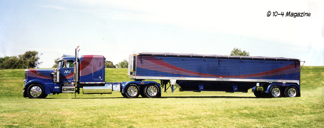 The following year, Jason went to his first truck show – the 1996 Mid-America Trucking Show (MATS) in Louisville, KY – and he was hooked! A few years later, he bought a new 2000 Timpte hopper trailer and had it painted with the “swoop” scheme to match the tractor. Hooked together, this nearly unbeatable combo looked amazing and won a lot of awards over the next few years.
