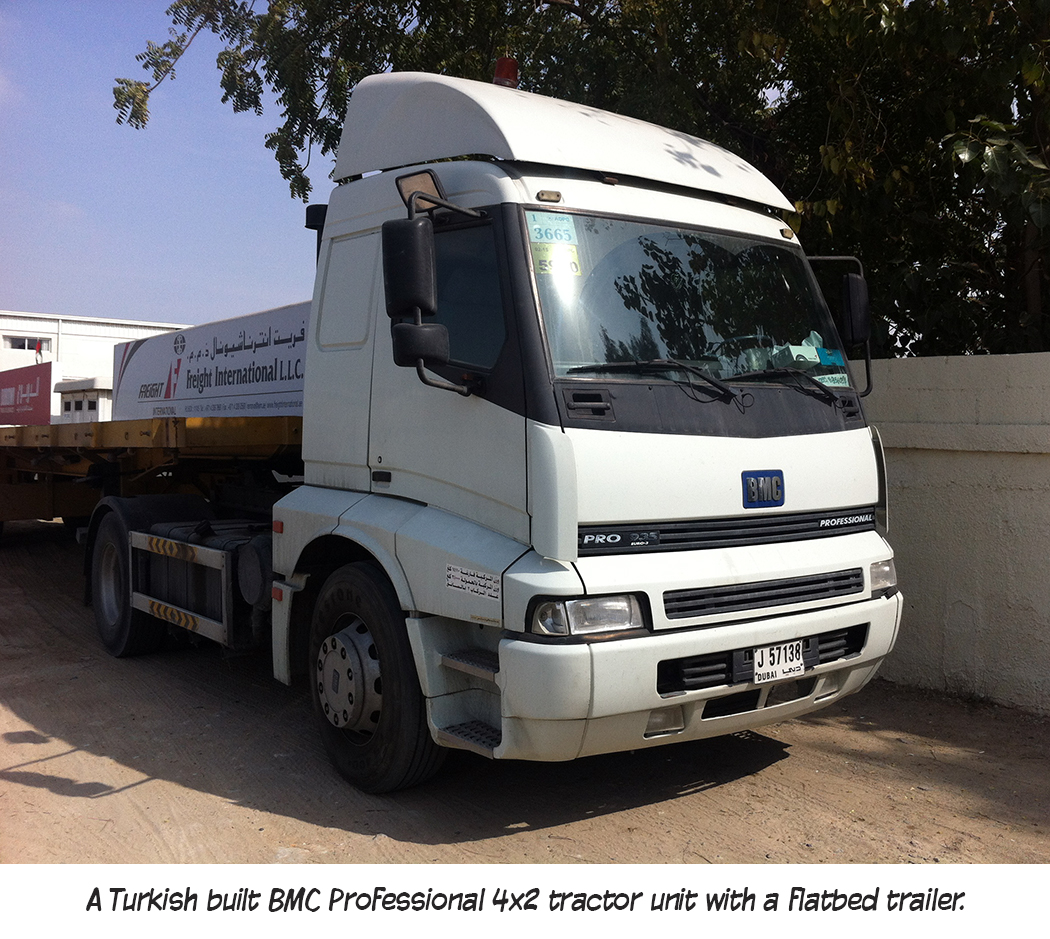 Road transport vehicles in Dubai are very cosmopolitan and, as you might expect, in far eastern locations like Dubai, there is a mix of old and new. There are lots of American, Turkish, Indian, European and Chinese trucks in the city. Most brands have dealerships or distributors in the UAE region.