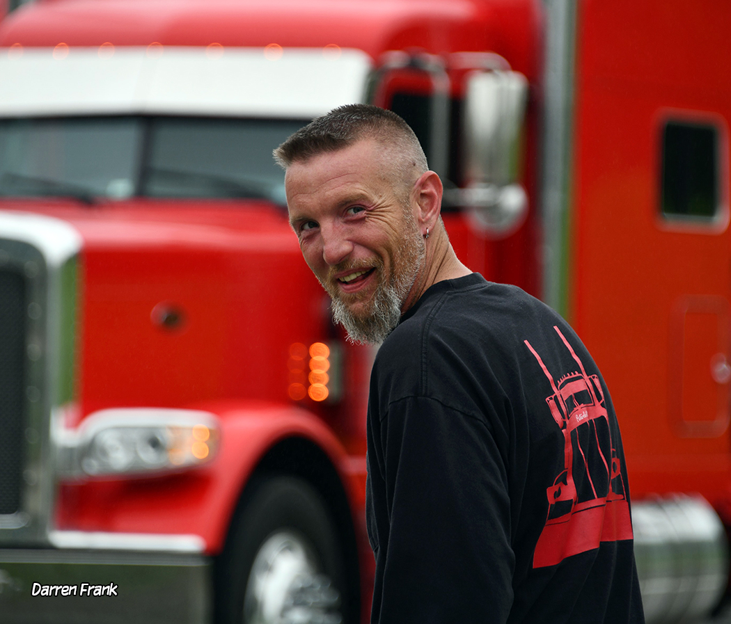 Darren Frank (39) of Princeton, IL started running Illinois to California when he was just 18 years old, using his older friend’s ID (they looked alike). He did this because the best times of his childhood years were with his dad, driving with him in an old Chevy Titan COE. Darren even kept driving while battling Stage 4 cancer, getting chemo in the morning, then doing an overnight load, before getting another dose of chemo the next day. And, having been cancer-free for the past 12 years, he won that battle. Trucking was his true therapy (and still is). Four years ago, Darren met Keith Arteberry, and he has been driving for him ever since. Darren says he wishes that he would have met Keith sooner, because this man not only pays him top dollar, he also provides him with top-quality equipment (the bright red 2020 Peterbilt 389 seen here), and to top it all off, shows him nothing but utmost respect for the job he does. Even though he beat cancer, it left behind damage that needs to be tended to from time to time, but Keith promised Darren, no matter his health issues, he would always have a job. And, after parking the truck earlier this year while Darren got treated, Keith proved he meant what he said! Because of that, and his solid upbringing and old-school training, Darren never refuses work and considers being one hour early everywhere he goes – to pick up or deliver – as part of his duty. This guy is never late! Small Business America is where you find the most spirited people in trucking, and Darren and Keith are both fine examples of that fact.
