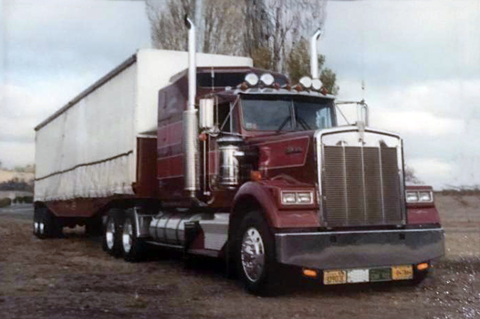 Later that same year, Ed bought a new 1979 Kenworth W900A with an Aerodyne sleeper and a 3406 PCTA Caterpillar engine and then put a driver in the Western Star. That only lasted a few months, so Ed sold the Western Star and continued driving the KW, which was painted dark brown with light brown and tan stripes. Ed drove that Kenworth until 1985, putting 900,000 miles on the odometer, before buying another new Kenworth – a 1985 W900B – powered by a 3406B Cat with a retarder. This KW also had an Aerodyne sleeper and was painted maroon, plum and silver. Leasing the truck out to Plywood Components Inc. (PCI) in Albany, OR, Ed drove for them for four years, until the truck was paid off, then went back out on his own again.
