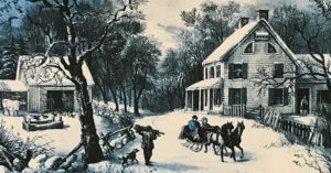 Hauling milk day and night, things looked bright – until the day before Christmas – when a big storm rolled in and closed the roads.  Everything came to a halt.  The men were busy working outside in the barn, so grandma decided to clear the porch, in case any company dropped by after the Christmas Eve church service.  She was about half done when she felt a sharp pain, so she went back into the house and sat down to rest.  Grandma knew what the problem was – Junior was on the way.  He wasn’t expected to arrive until the following week, but he wasn’t going to wait for his appointment.  They had planned to go to the hospital for the delivery, but with the weather the way it was, that didn’t look good.  These men were used to working with cows and horses, even helping pups be born, but a baby?  Thinking, “Not here, not now,” they decided they better go for help.  The roads were snowed over, so the only thing to do was hitch up the old team, get out the sleigh, and try to get the neighbor’s wife to the farm.