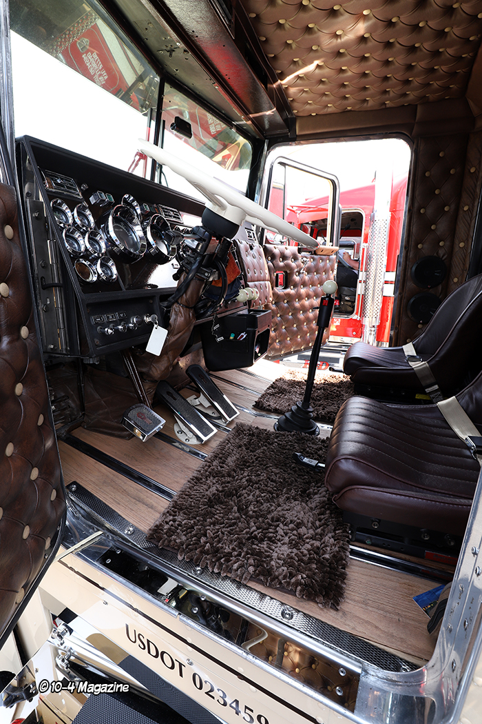Bob Vogel’s 1956 Peterbilt 351 bobtail, built over the last few years by Dustin Dickerson and his team at Dickerson Custom Trucks in Thorntown, Indiana, was inspired by Key West.  In fact, the truck was even named “Low Key” in honor of the place Bob loves so much.  Featuring more custom pieces than you could shake a stick at, the rig, which was assembled atop a modern 260” chassis, is powered by a completely rebuilt Cummins 262 hooked to a 5×3 transmission and 3.70 rears.  It also features a Mercury-inspired aftermarket sleeper, cutting-edge lighting, and a totally custom interior, which includes a cool custom-printed floor with a photograph of the famous “Seven Mile Bridge” in Key West.