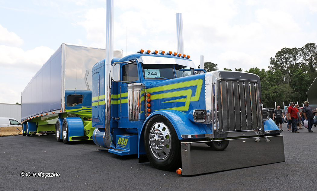 Held in Wildwood, Florida on April 23-25 in the parking lot in front of, next to, and behind the 75 Chrome Shop, the trucks, along with over 20 vendors, were jammed into the space from end to end and front to back.  Arriving the day before and then setting up on Friday morning, our booth was positioned near the RoadWorks display, which featured their current “Night Moves” Peterbilt 389 show truck and trailer, painted bright green, metallic silver, and black.  Parked next to our booth was also our friend Gary Jones and his “Not Daddy’s Money” show truck (our July 2020 cover feature) and Dill McKinney’s “Lucille” 379 Peterbilt (featured in our August 2020 issue).