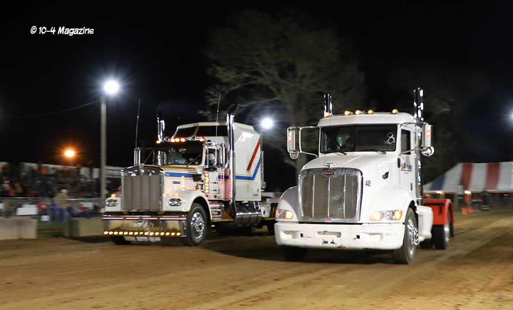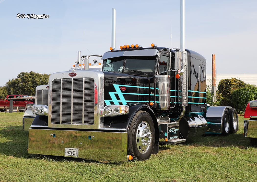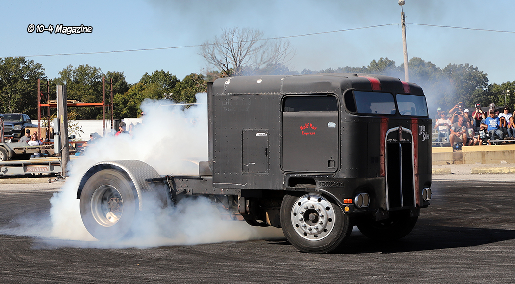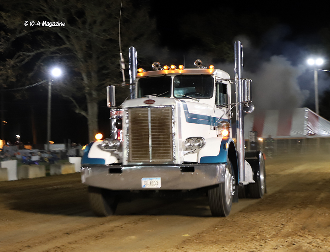 Just before the convoy began, it was time to pass out a few awards. This is not a “judged” show, but there are a few trophies handed out, most based on the competitor’s choices. The Best of Show Bobtail award went to Chad Foss and his slammed “Silver Lining” Peterbilt, and the Best of Show Combo trophy was given to Todd Gribble and his super-clean, dark blue 2012 Peterbilt and polished and painted pneumatic trailer. The People’s Choice went to Dusty Berry of Berry & Sons for his white Peterbilt 389 (all of the voting for the People’s Choice award was done on the GBATS app). The trophy for Best Rat Rod went to Jason Douglas of Arnold, MO and his 1950 GMC (Jason and his GMC were also the winners of the Diesel Dirt Drags on Thursday night). TBS gave out a “Coolest Truck” award to Don Wood of DSD Transport and his blue and yellow Peterbilt combo, and Zephyr Polish chose Kary Bryce of PMI and his “Snow White” Peterbilt as their “Best Shine” winner.