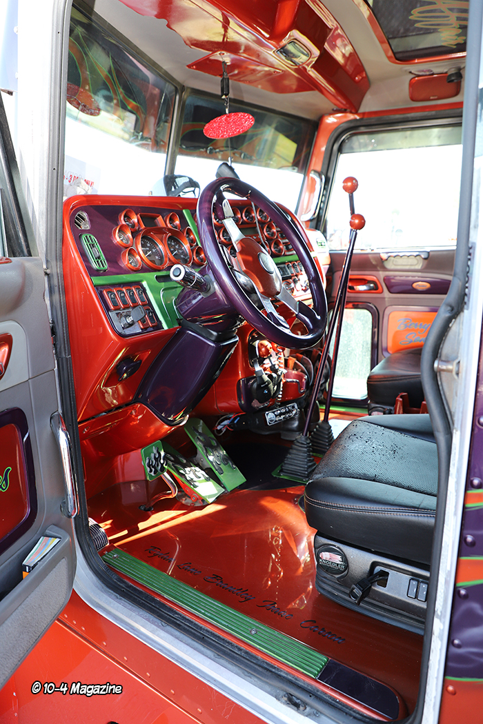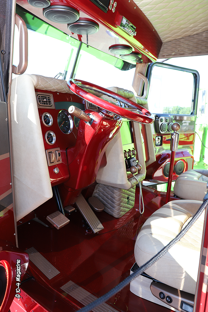 To try and mention all the notable trucks at GBATS would be impossible. There were, however, a few that really stood out. In addition to the trucks that got awards, with Chad Foss’ being one of my obvious favorites, the one that stood out the most to me was TraLo’s latest build – a highly customized Kenworth T660. Painted in “Legendary” metallic brown, gold, and red colors, with no visible bolts or brackets, this thing was smooth as a baby’s bottom. All the vents and handles were shaved clean from the exterior, the dash was reconfigured and completely custom, and its big sound system had plenty of one-off fiberglass speaker pods and such. Being an “aero” style truck, it probably didn’t get the attention it deserved, but it was definitely worth a second (or third) look.