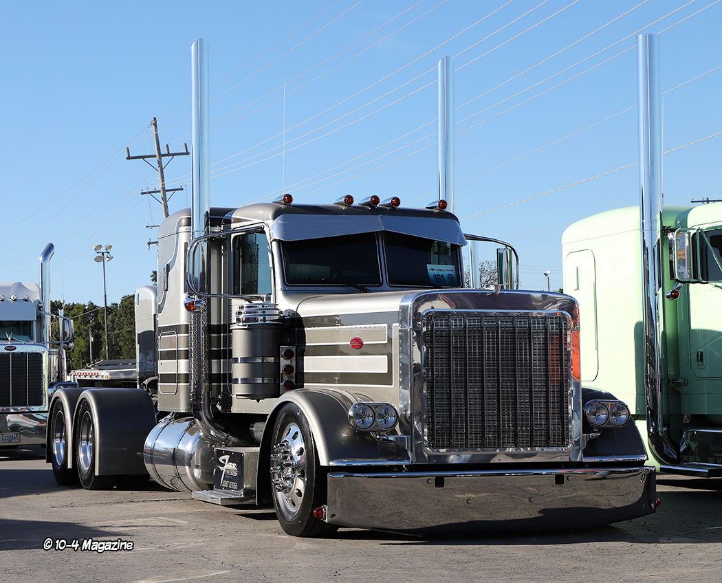 Parked directly in front of our booth was Chad Foss and his all-new “Silver Lining” Peterbilt. Built by Clint Moore, this super low rig, featuring an all-silver paint job and stripes in multiple shades of silver, was also featured on a new 10-4 Magazine shirt we debuted at this event. With a beautiful drawing of Chad’s truck and the tagline “Always Finding the Silver Lining” underneath, this shirt, along with our “Back Row” shirt (with the tagline “Hangin’ With the Cool Kids”), were both very popular. The amount of people walking around at this event was phenomenal!
