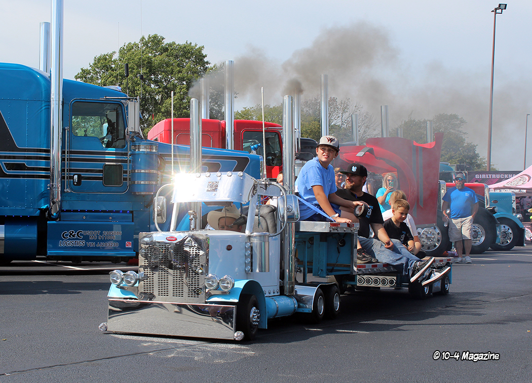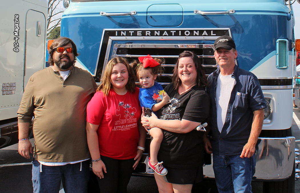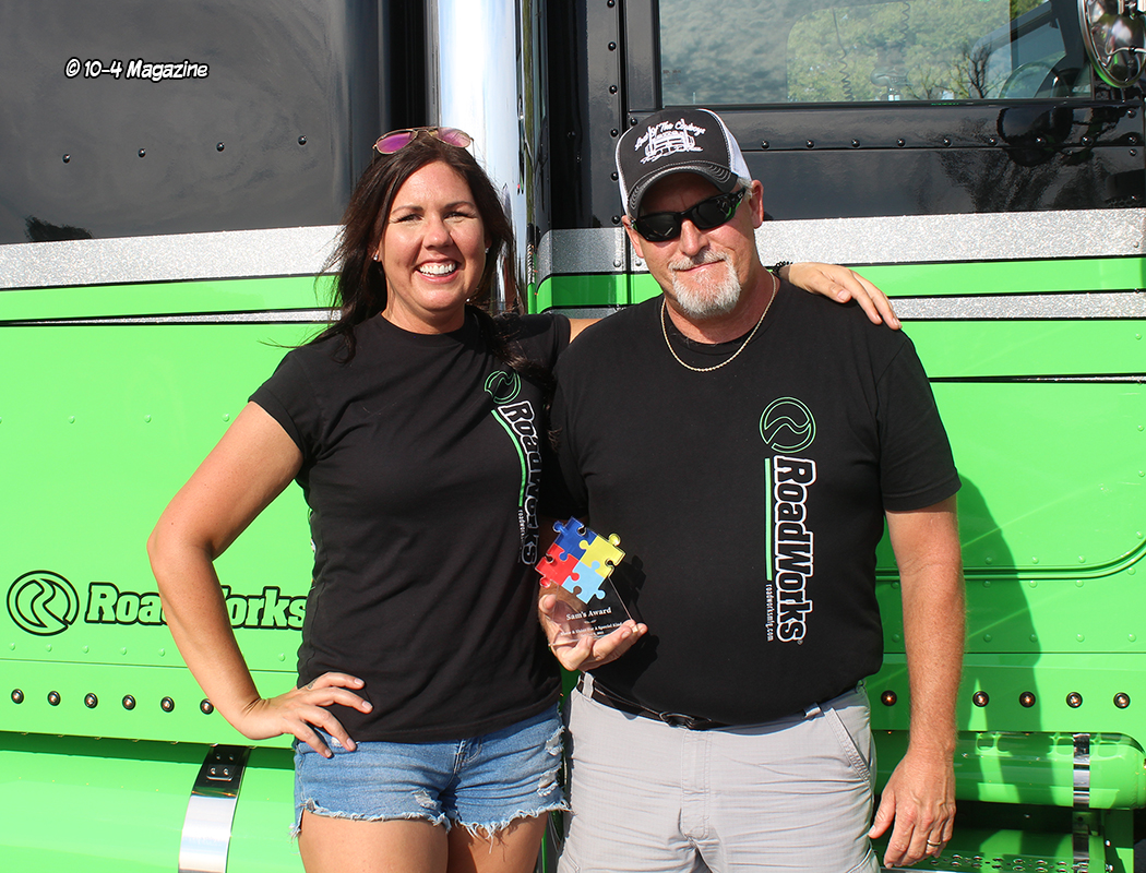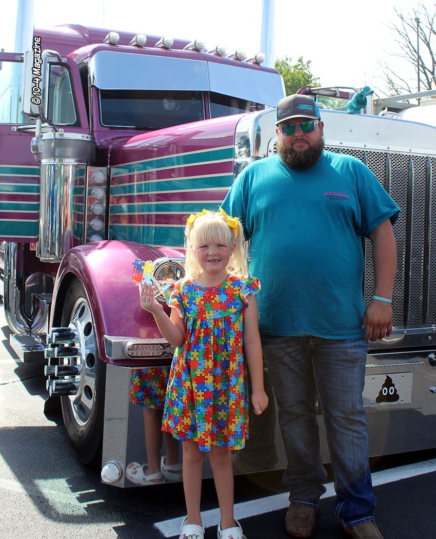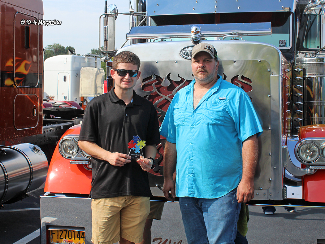 I also had special trophies made for Jolie, Ari (Ashley Smith’s daughter), Evan Robinson and Sam Mills (all of whom have Autism) to hand out to their favorite trucks. Jolie’s Award was given to Austin Jamvold-Banks and his flashy magenta and teal Peterbilt 379; Ari’s Award was given to Mike Britton and his 1976 two-tone blue International COE; Evan’s Award was given to Randy Victory and his 1999 orange and black “Wild Child” Peterbilt 379; and Sam’s Award was given to Troy Huddleston with Roadworks and their lime green, silver and black “Night Moves” Peterbilt.