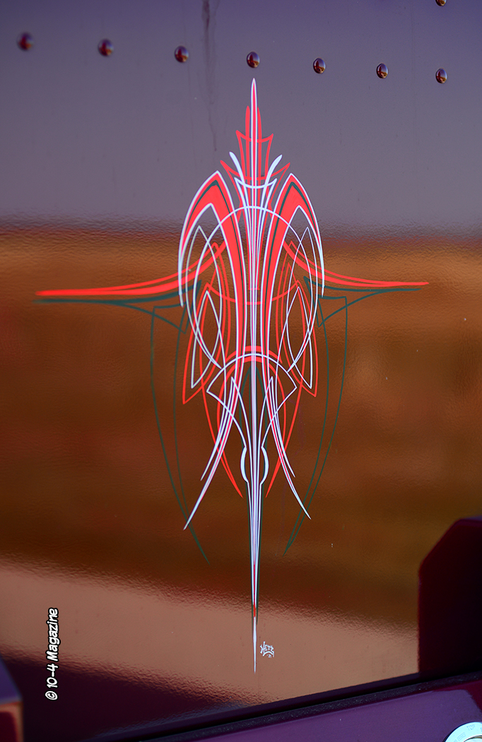 The trailer is a 2017 Great Dane 53×102 closed tandem with a Carrier unit, and it is just as clean as the truck. Featuring stainless Hogebuilt quarter fenders, polished rails, and stainless flat doors, the trailer is also adorned with a unique stripe. In the mid-80s, a fellow driver and friend of Bubba’s named Ryan, had this design on his trailer. Ever since then, Bubba has wanted the design on his trailer, so when Bubba bought the 2017 Great Dane, he had it put on.
