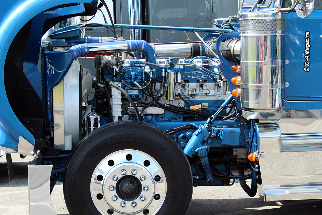 With a nice variety of cabovers and conventionals, there was plenty to see, including older classic rigs, newer trucks, antiques, show trucks, and also just everyday work trucks. Matt Neblock was showing off his new teal-colored KW, Randy Victory brought his latest build (a blue and chrome Peterbilt 359), and Gary Jones had his super-stretched white and red Peterbilt cabover. Power couple Dean and Theresa DeSantis both brought out there amazing red combos, and there was also a sharp blue A-model Kenworth that had a beautifully painted and pinstriped motor to match. For such a small show with a local vibe, the trucks in attendance really were top shelf!