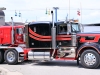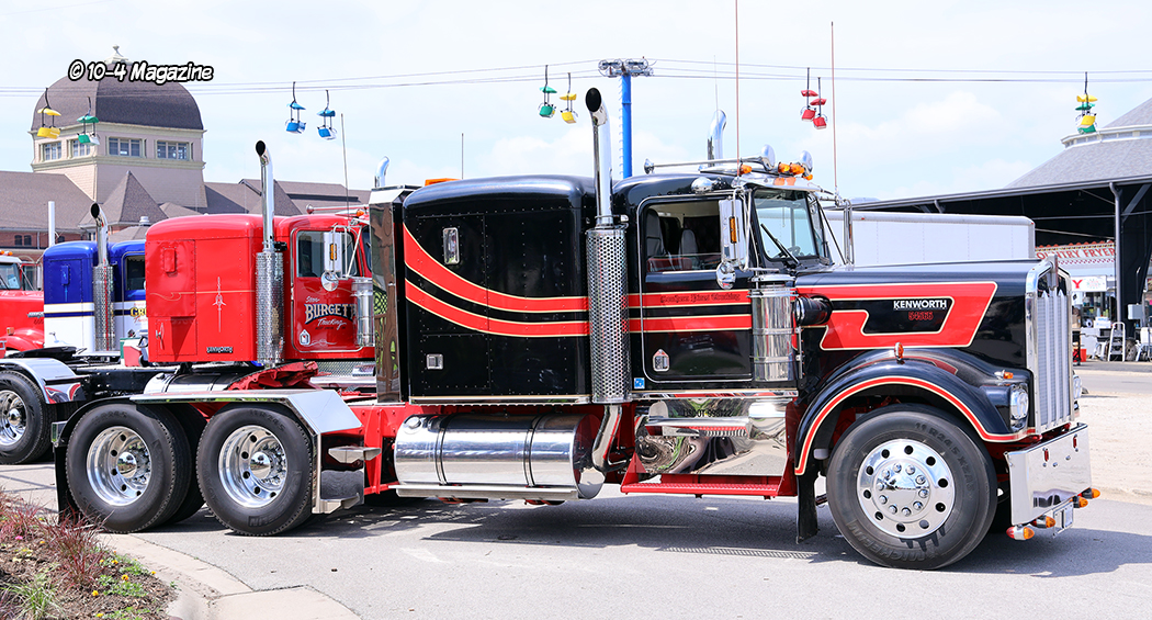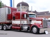 There were many sharp looking trucks at this show, and it was tough for me to pick my top five favorites, but I did.  My top favorites were Betcher Trucking’s blue and white needle nose Pete, Walter’s Trucking’s red and black with white stripes Mack Superliner, Van Kampen’s red, orange, and yellow 359 Pete, the Al-Amin Brothers’ matching W900 and Freightliner cabover (silver with yellow stripes), and my top choice was the “Cherry Pie” 1973 W900A – a red and white rig with gold stripes and a Double Eagle sleeper.  It was a “cherry” old Kenworth, for sure.