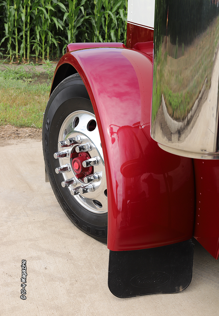 After six months of hard work, the truck made its debut at the Wheel Jam Truck Show in Huron, SD in June 2021. I was at that show, and that is where I saw this truck for the first time. I was impressed, but when Tyler told me it was going to work the following week, I was skeptical (I have heard that before). However, this one actually did. Fixing up a 2014 Utility reefer trailer by painting the upper and lower rails and the reefer unit to match, polishing the wheels, and painting the tanks to match the truck (maroon with polished ends), it was all done in about a week. And once it was done, Tyler’s driver Trevor Coufal (28) of Oakland, NE, hooked the truck to it and headed west. Since then, he has run this combination every day, taking meat from the Midwest to the west coast, and then bringing whatever they can find back. This is a true work truck – but it’s also a show truck.