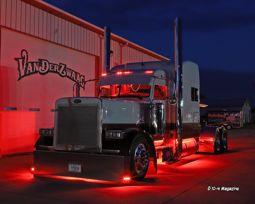 When building a truck, you should never settle for less than you want or deserve. And the same is true if you are building trucks – you should never settle for “good enough” because your customers deserve more than that. For this reason, Tyler Van Der Zwaag (29) of Van Der Zwaag Customs in Hull, IA made “Never Settle” his company’s motto when designing their website… and it stuck! Having built many cool trucks for his customers over the past few years, Tyler has also built a few for himself, including this everyday work truck featured here (and on our cover and centerfold this month), which is piloted by Trevor Coufal, a driver for Tyler’s other company, Van Der Zwaag Trucking.
