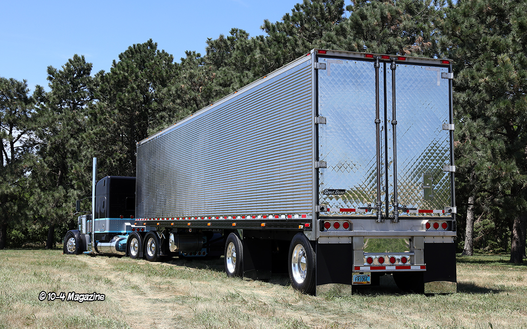 Purchasing the truck in October 2018 from a guy named Brandon Gregoire, the rig had the same paint scheme but was not as customized as it is today. It also had a 70-inch standup sleeper, which they kept on it for several years. Boe’s dad was (is) a big believer in pusher axles because it allows them to haul more freight, so a drop axle was installed on the truck early on. At first, before the reefer trailer was purchased, Boe pulled a nice, matching, brand-new black hopper trailer, but what he really wanted to pull was a shiny reefer. So, about a year and a half ago, they found this sharp Great Dane and bought it. And from there, it was game on!