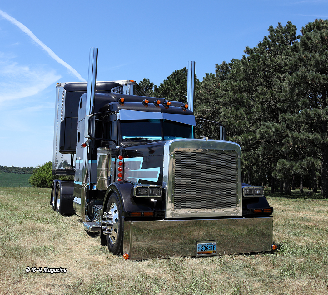 We first met Boe and the entire DelaBarre family at the Wheel Jam Truck Show in Huron, SD in June 2021. At that time, his truck was hooked to the reefer trailer, which had a matching unit and painted rails. Along with Boe’s truck was also Hunter’s bright green 2007 Peterbilt 379 hooked to a polished bull rack, and dad’s yellow and black 2006 Peterbilt 379, hooked to a nice, polished hopper trailer. Together, these three rigs were very impressive, and each one earned a trophy for something, but it was Boe’s truck that really stood out to us for whatever reason (probably the colors).