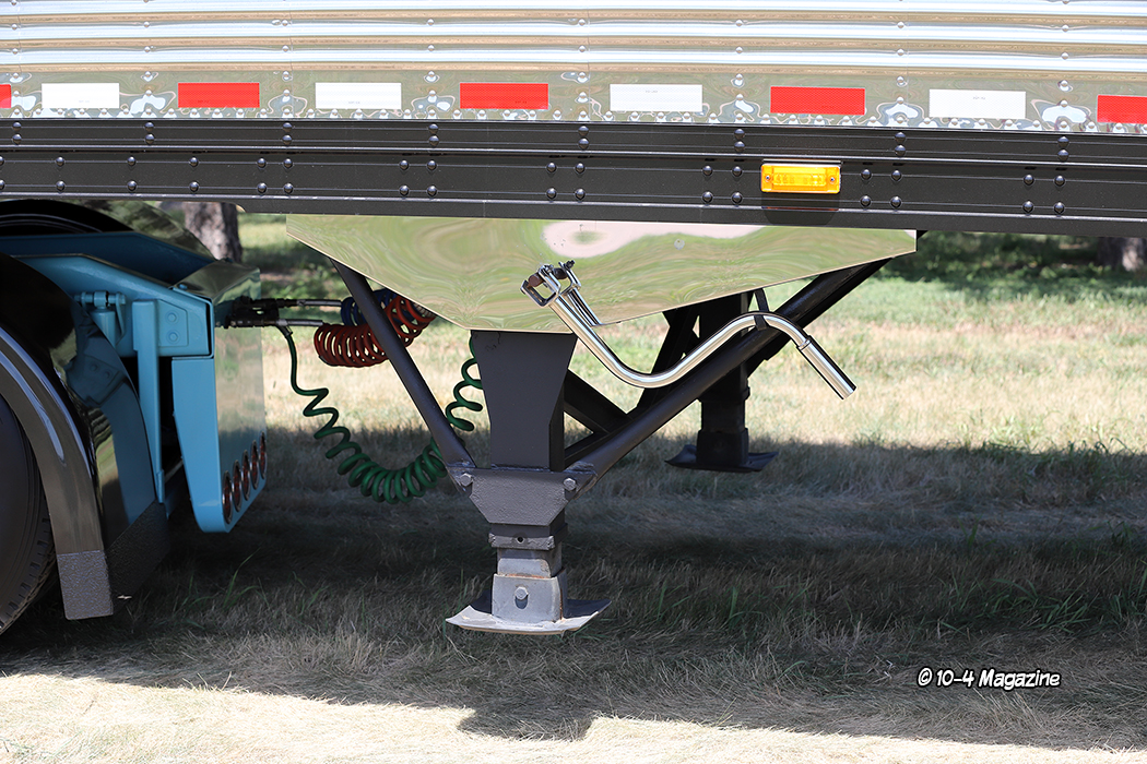 Under the hood, not much has been done to the juiced-up C15 CAT engine, besides a little added Atlas blue paint on the air intake tubes. Mated to an 18-speed transmission, the truck has a 273-inch wheelbase, and currently has 1.4 million miles on the odometer. Hooked 90% of the time to the 51-foot 2007 Great Dane reefer trailer with a 12-foot spread and a matching Thermo King unit seen here, the trailer also has a host of added stainless-steel pieces and chrome landing gear crank handles.