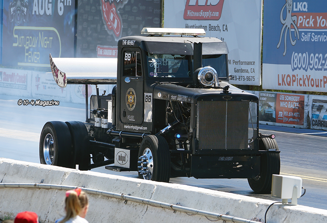 NHRA nitro funny car driver Cruz Pedregon made a surprise drop in visit to watch a few of the final races, as he has ties to trucking and truck drag racing from way back in the 80s. Dan Linss was lucky enough to do a short live interview with him before the show came to an end. Bringing the show to a close, awards were scheduled to start at 5:00 PM and the show ended at about 6:00 PM.
