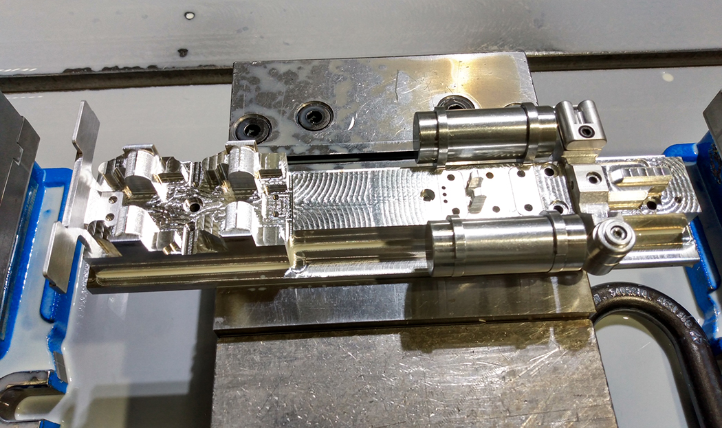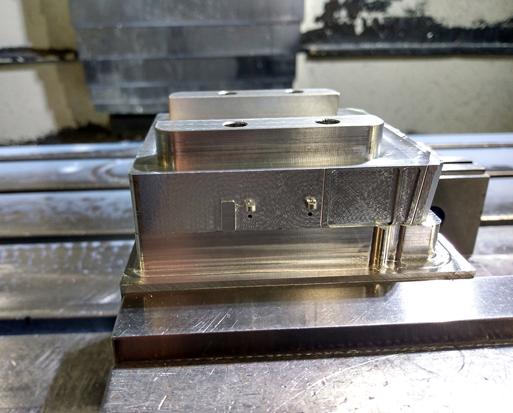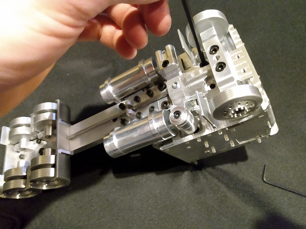 After building the trailer, Trent went to work on the frame of the truck, which proved to be the most complicated piece of them all. Almost everything had to be machined and made to bolt on to that piece, and many of the individual parts required several setups on the CNC machine. Then, after everything was made, Trent hand-painted or airbrushed many of the parts, and hand polished a few, as well. He even hand-built the case the rig resides in, creating a machined aluminum base, fitted with a plexiglass cover, that bolts down on each corner.