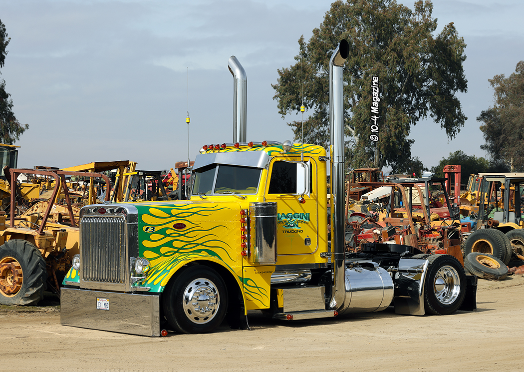 The next generation of the Maggini family entered the picture in the late 1960s and on into the 1970s. Melvin and his wife Jessie had three children – Annette (54), Barbara (53), and then Mike (45). They all joined the family business, and Annette and Mike are still actively involved (Barbara and her husband moved away and are no longer part of the company). As the early 2000s rolled around, things were going great. The company had over 20 trucks and trailers, Mike’s truck (known as #13) was being featured on our cover, and Melvin bought another truck strictly to show and play with that just happened to be a past 10-4 cover truck from April 2002 (Robert “Boomer” Baer’s olive green and black 1962 Peterbilt). Then, the economy tanked.