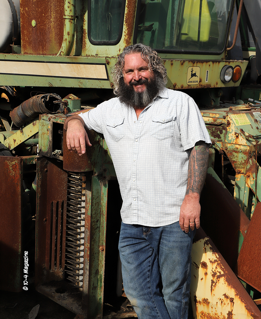 For this latest photo shoot in 2023, we went to a tractor junk yard and found some cool spots to take our pictures – still at no charge, I might add. Thanks go out to the folks at MyersWard Tractor & Equipment Company in Riverdale for allowing us to take our photos on their property. We even located some old green and yellow (and rusty) John Deere 9900 cotton picking machines on the 25-acre site, which sort of matched the truck, to use as the background.