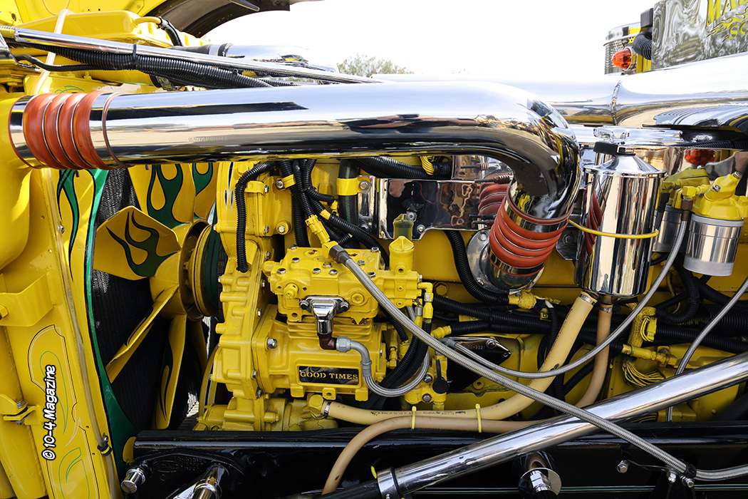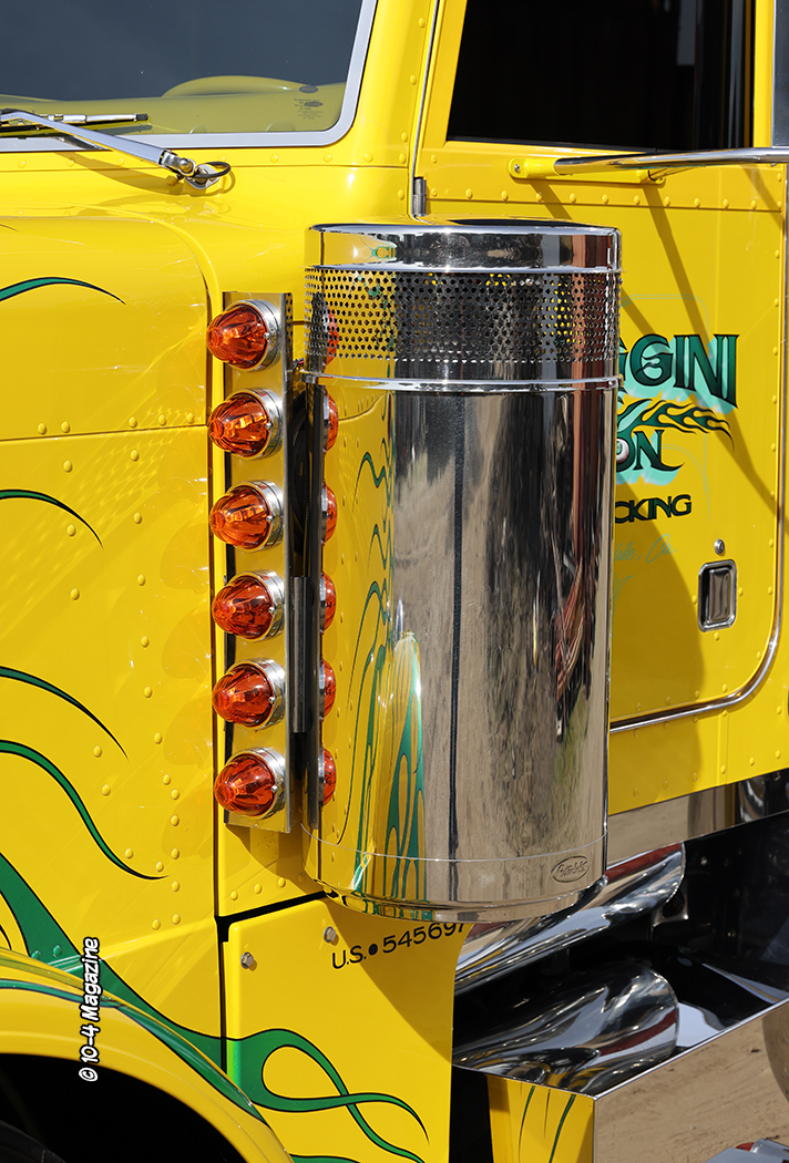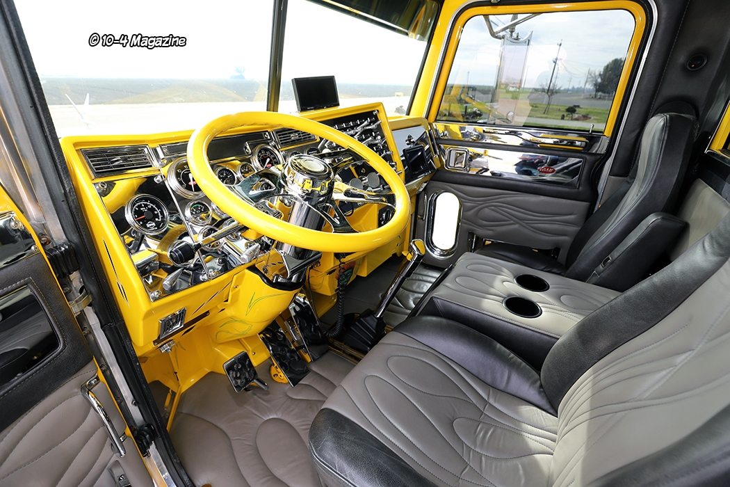 As mentioned earlier, Melvin bought a 1962 Peterbilt that had been on our April 2002 cover. Immediately after buying the short-hood truck with a 60-inch Mercury sleeper, they replaced the sleeper with a smaller one, then proceeded to lengthen the truck’s narrow nose by sliding the cab back and extending the hood. Of course, it got the customary yellow and green paint, along with a host of other custom touches, and a cool new interior. We are proud to say this unique truck pulls our Truckin’ For Kids show trailer to various events throughout the year. Driven by Roger, Annette’s husband, we love hanging out with these two at the shows. A big “thank you” goes out to them and the entire Maggini family for their continuous help and support.