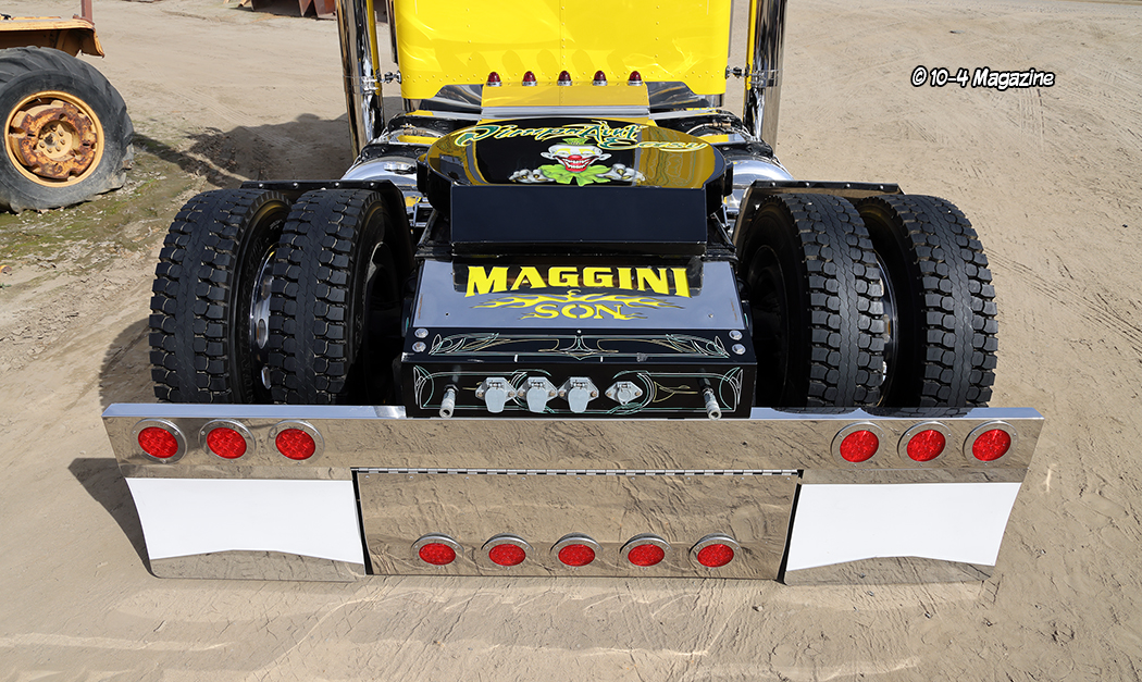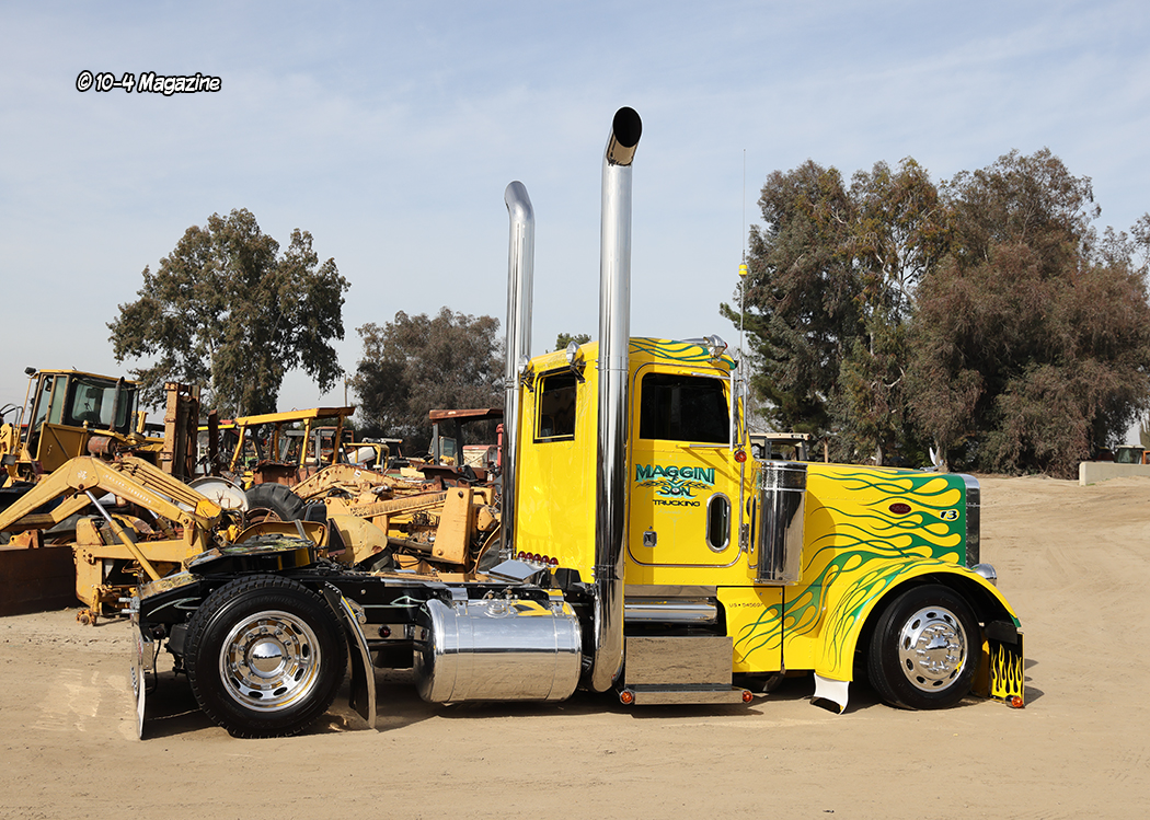 It seems like just yesterday that me and my business partner Erik “Big E” Sieben shot this truck for its first 10-4 Magazine cover. Heading north from SoCal in the early morning, I was driving our V10-powered Ford company van and we were running late, so I put the pedal to the metal. Not surprising, I got pulled over not far from Riverdale and further delayed our arrival as we waited for the nice officer to write my ticket. Not a good start to the day. But it got better from there. From that day on, we have had a great relationship with the Maggini family, and always look forward to spending time with this fun group of people who, as the title of their 2003 story stated, “Work Hard – Play Harder!”
