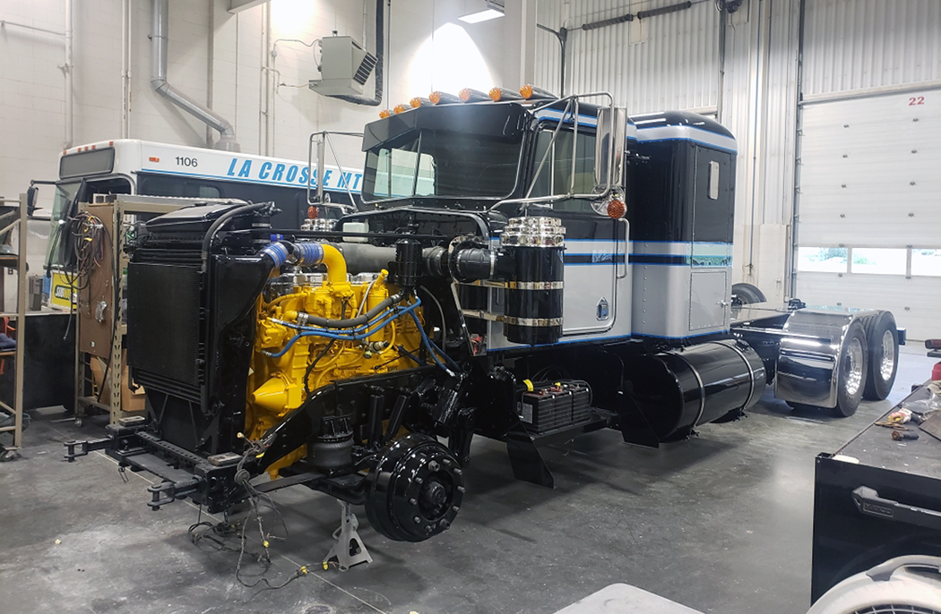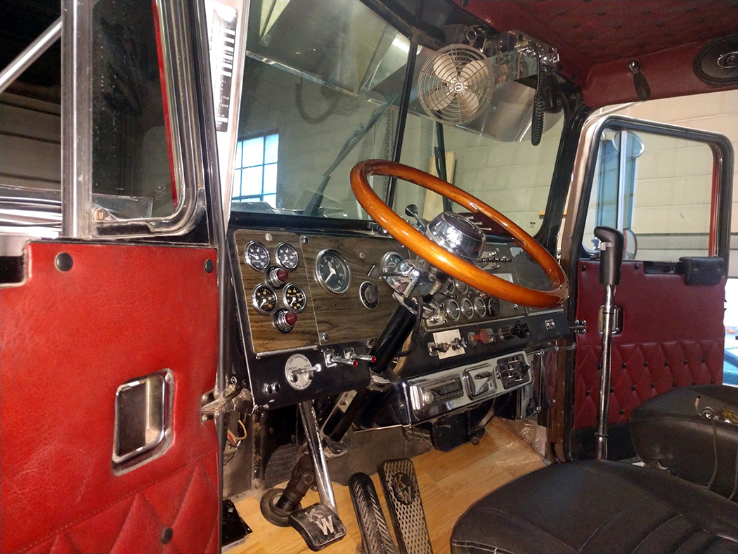 Richard told us this beautiful rig belonged to Ray Leslie Jr. Ray restored the truck in memory of his dad. Richard also told us that it still works, pulling a stainless spread-axle reefer trailer, when needed. Richard owns Compty Brothers Detailing and travels around southwest Wisconsin in the summer, from shop to shop, buffing and detailing trucks. In the winter, he heads to Florida, so he can keep working. If you want him to work on your truck, call (608) 475-1222.