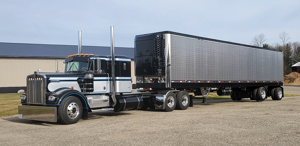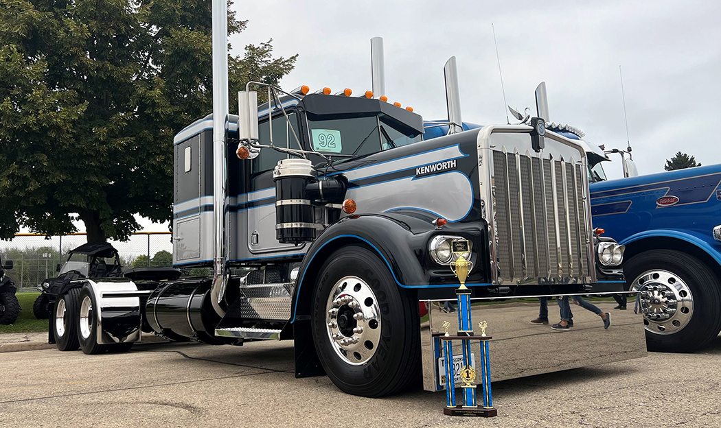 Back in August of 2022, at the Waupun Truck-N-Show, John and I were extremely impressed with this beautiful black, silver, and blue 1973 Kenworth W900A. During the show, we got to chat with Richard Compty, who had put in 80 hours detailing this old girl to perfection. Looking inside, outside, and underneath, we could not find one place that he missed. I knew right then and there that this truck was going to be featured one day in one of my upcoming articles – and well, that “one day” is today!
