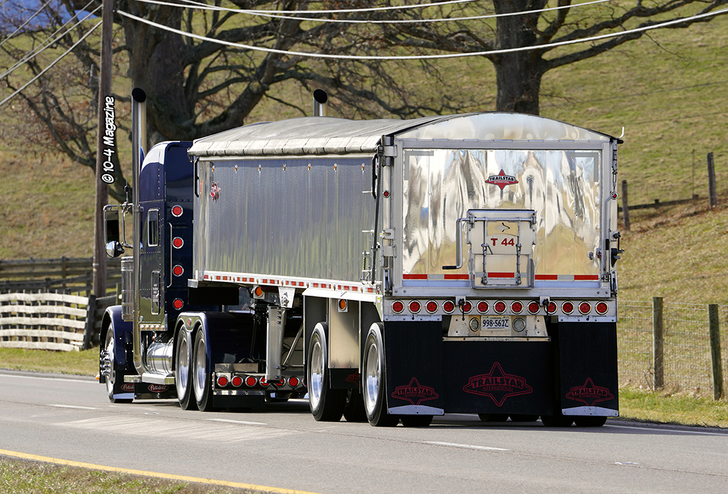 If you’ve met Austin or Greg at a show, chances are you’ve also seen the stunning show truck that Greg owns (also pictured here). I saw this truck for the first time at the first annual Mayberry Truck Show in Mt. Airy, NC, where it was also awarded a calendar spot in their 2022 show calendar. From purchase, this truck, which is a lighter shade of blue, is what Austin ran full time when he started trucking. It is a 2018 Peterbilt 389 powered by a Caterpillar 6NZ, an 18-speed transmission, 3.55 rears, and a 305-inch wheelbase. It is usually hooked to a 2020 Trailstar dump trailer.