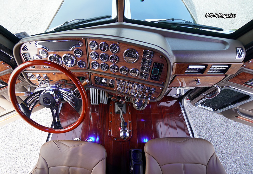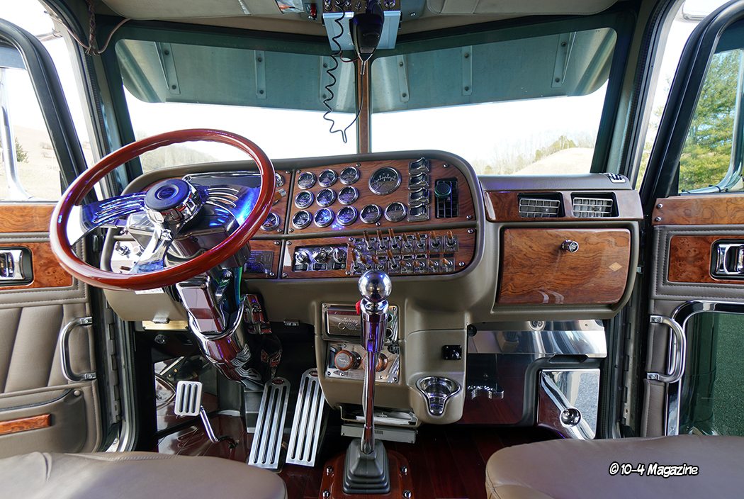 This Peterbilt 389 was purchased in early 2019 as a glider and then outfitted with the previously mentioned 6NZ. All the custom work was done in-house, including all the interior work, as well as the painted engine, which was completed by Greg himself. Elijah Leonard of Leonard Automotive was a big help with the paint work, which was done at the Kiser shop. This was also the first truck Greg and Austin entered to compete in a show (MATS 2019), where it placed 2nd in the “New Truck Bobtail” class.