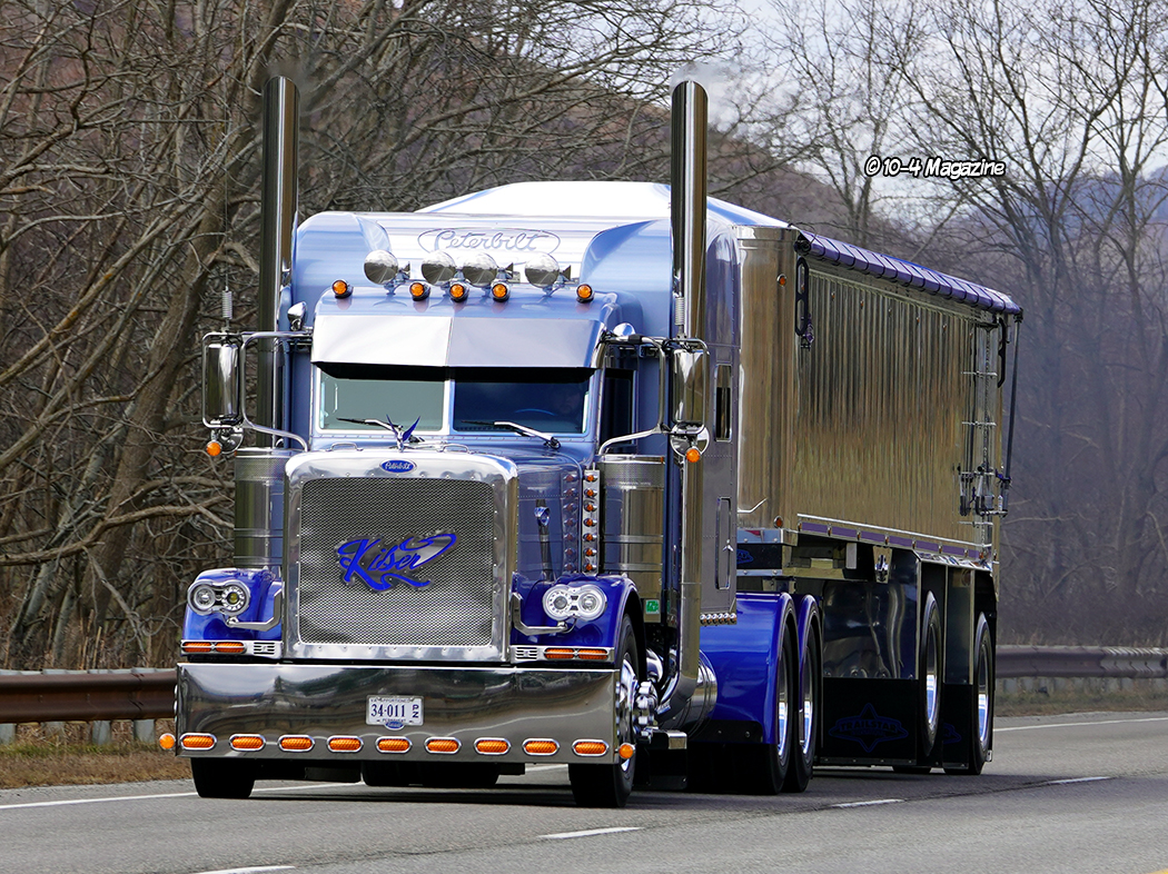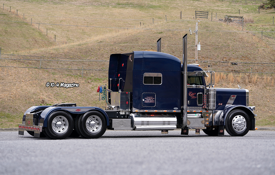 That Indigo Blue 379 is what Austin started driving after the 2022 Mid-America Trucking Show, and the truck Greg later agreed to sell Austin in January of this year – and the truck you see pictured here today. The same time Austin made the purchase of this 379, he also started his company, following suit with Greg and his Papaw, forming Austin Kiser Trucking, LLC. He had dubbed the truck “Just Gettin By” because it has to earn its keep and work every day.