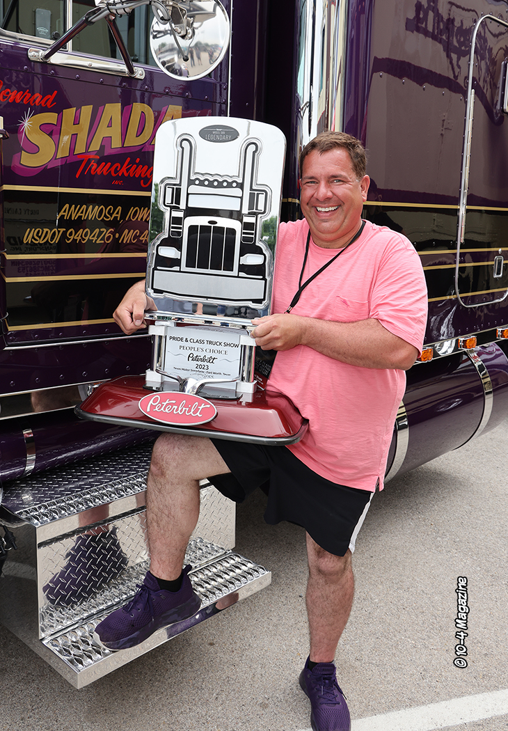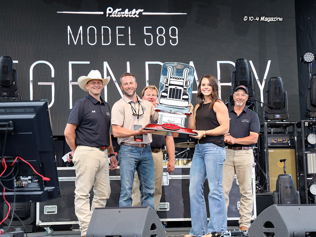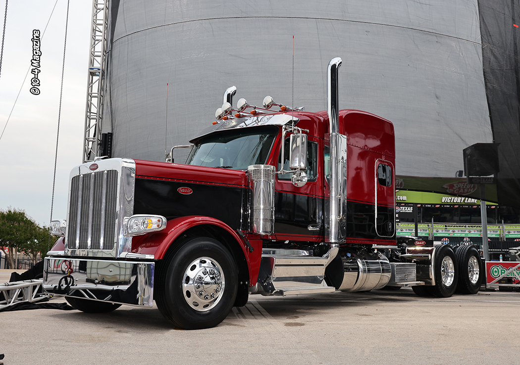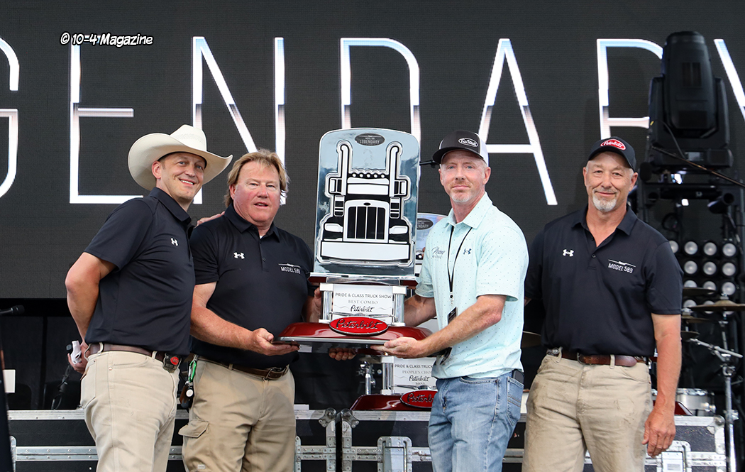 Judging for the Pride & Class Truck Show was done by representatives from Peterbilt. I didn’t envy the judges, because it would have been a difficult challenge to pick the top five Peterbilts for the awards presented. The awards were announced prior to the Model 589 Reveal and included Best Antique – Jake Wheeler (red and black 1967 Peterbilt); Best Bobtail – Josh Burch (blue and black Peterbilt 379); Best Combo – Troy Massey (white and light blue Peterbilt 389 with a polished cattle pot); People’s Choice – Conrad Shada (purple and black Peterbilt 389 with a polished cattle pot); Best of Show – Zach Strayer (cream and dark green Peterbilt 389 with a polished cattle pot). Congratulations to these five deserving winners, as the competition was at its best… dare I say legendary!