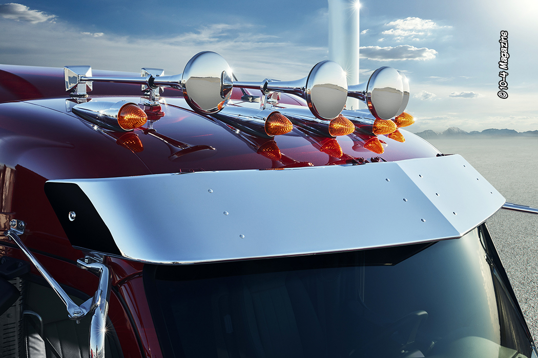 Some of the highlights Mr. Skoog covered in his presentation included the redesign of the exterior of this flagship conventional, the robotically assembled cab, all-aluminum hood, bold and bright 15-inch external air cleaners, 7-inch exhaust stacks with heat shields, a redesigned polished stainless visor, redesigned driver and passenger doors and windows, and most noticeably, the large one-piece curved windshield.