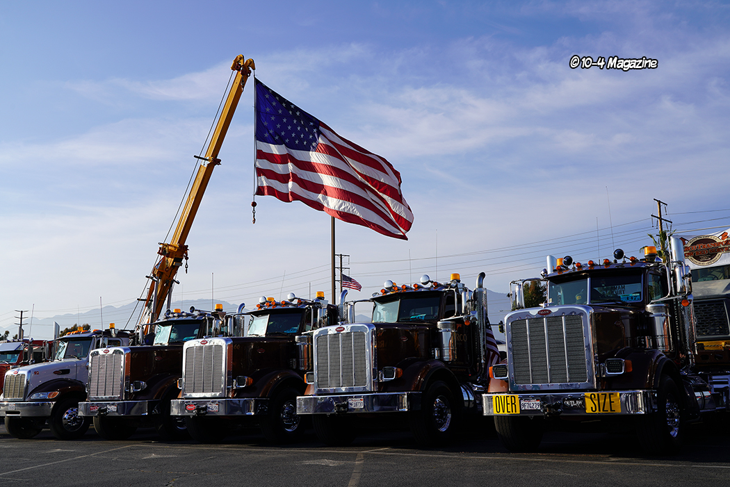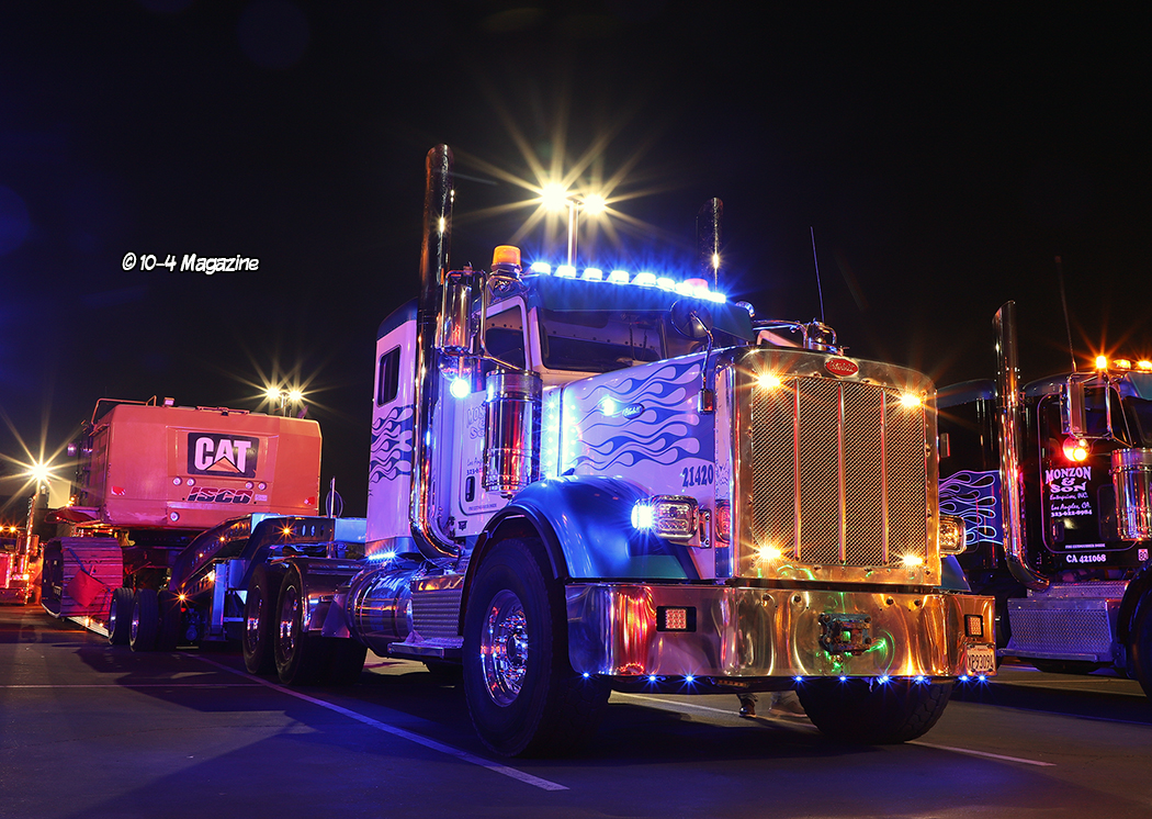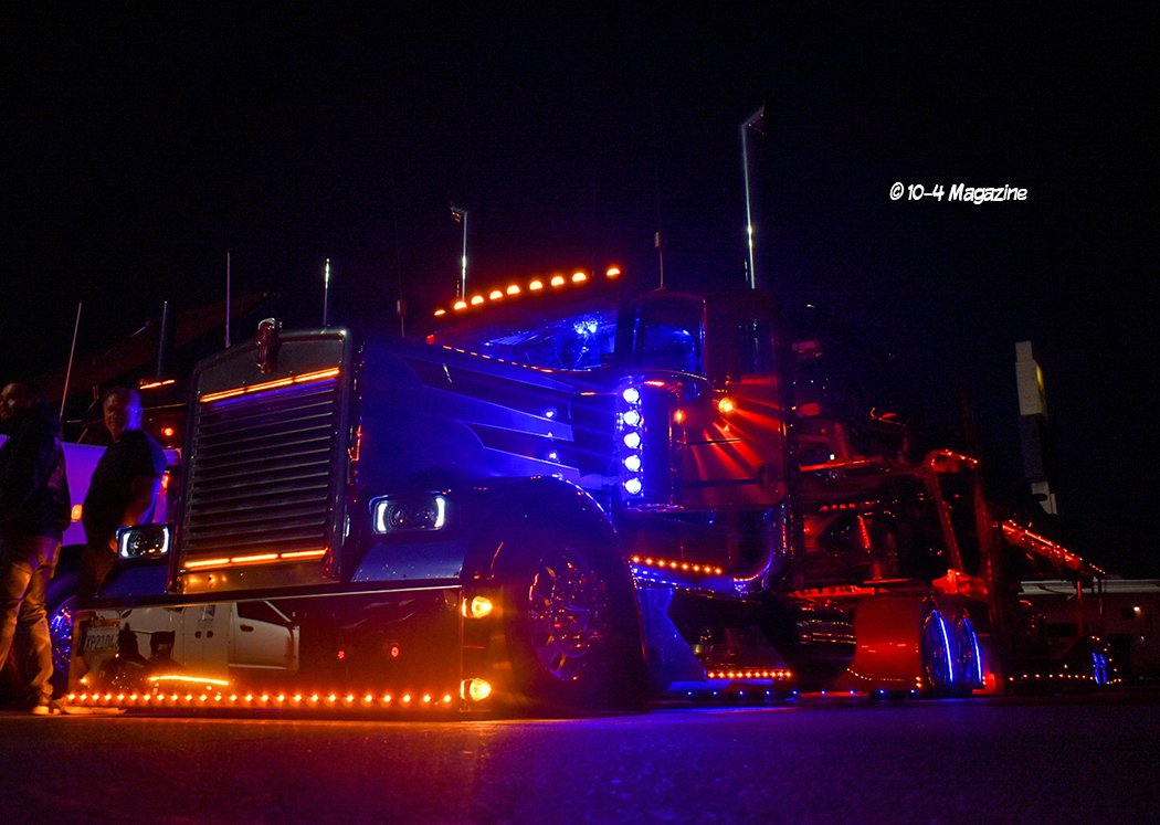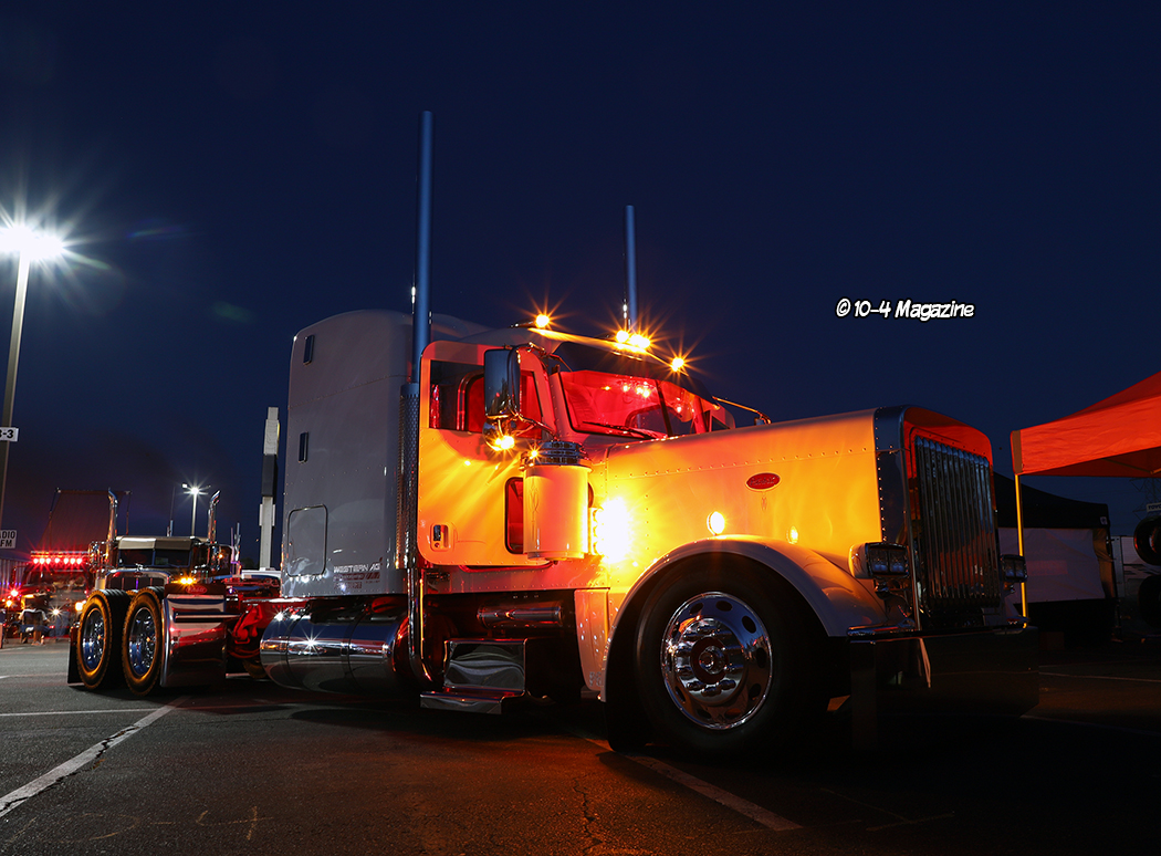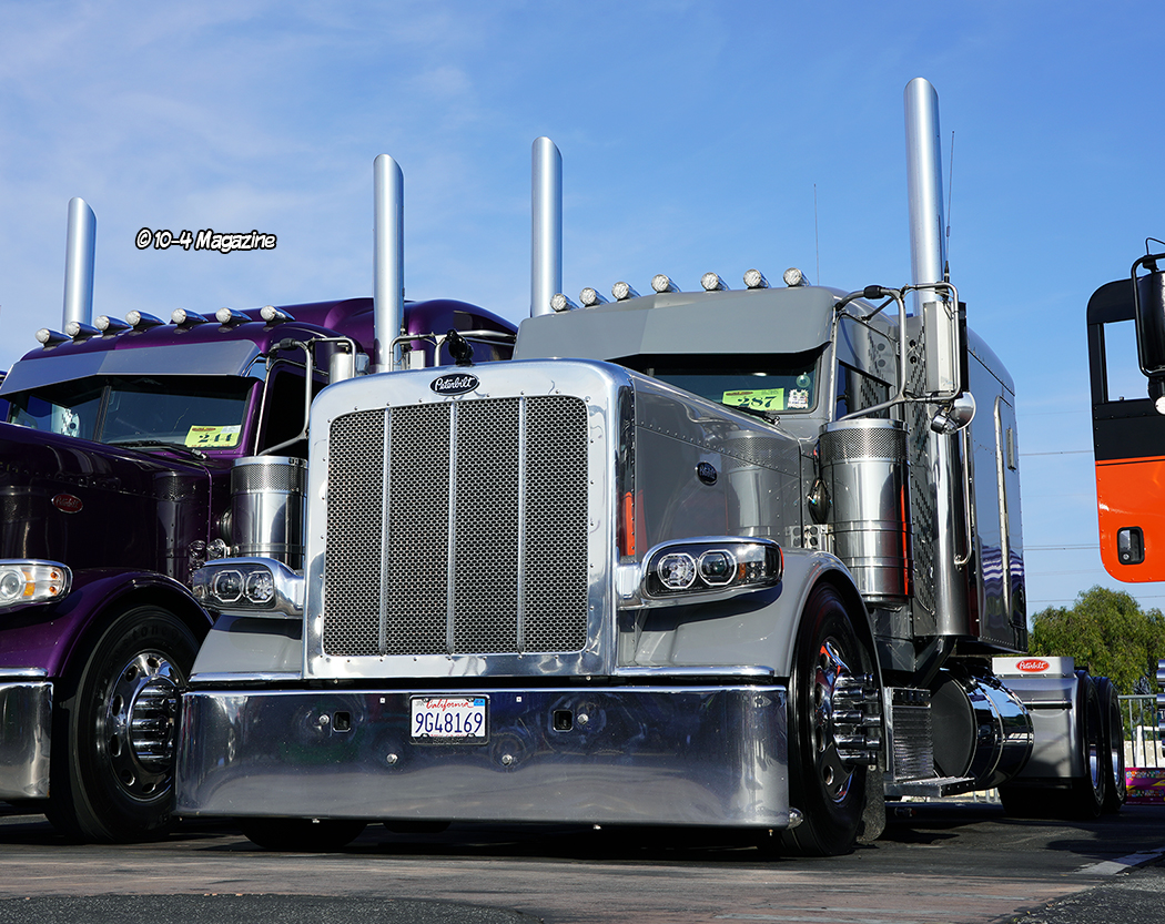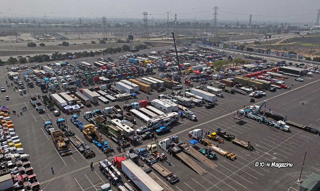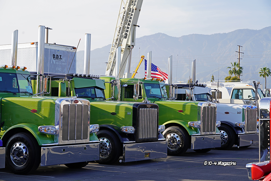 Not residing in California, I have to say, it was pretty awesome to see trucks I knew rolling into the show, including Cody & Shannyn Davis, plus three cover trucks I had the honor of photographing.  There was a solid group of past 10-4 cover truckers including Bruce & Kellie Cone (April 2023), Mike Maggini (March 2023 & March 2003), Dustin Graf from Kansas (February 2023), Eric Gibbons from Utah (April 2022), CG Soza (December 2021), Ruben Vargas (May 2020), Terry & Brock Wright (April 2020), Ron Ver Steeg (January 2020), Shane Boullion from Louisiana (August 2019), George DeFrancesco (June 2016), Rolando Nava (March 2014), Jerry Salinas (February 2013), Ron Kelsey (June 2009 & January 1998), and Maggini’s 1962 “Godfather” yellow Peterbilt (April 2002).  It was like a 10-4 Magazine family reunion!