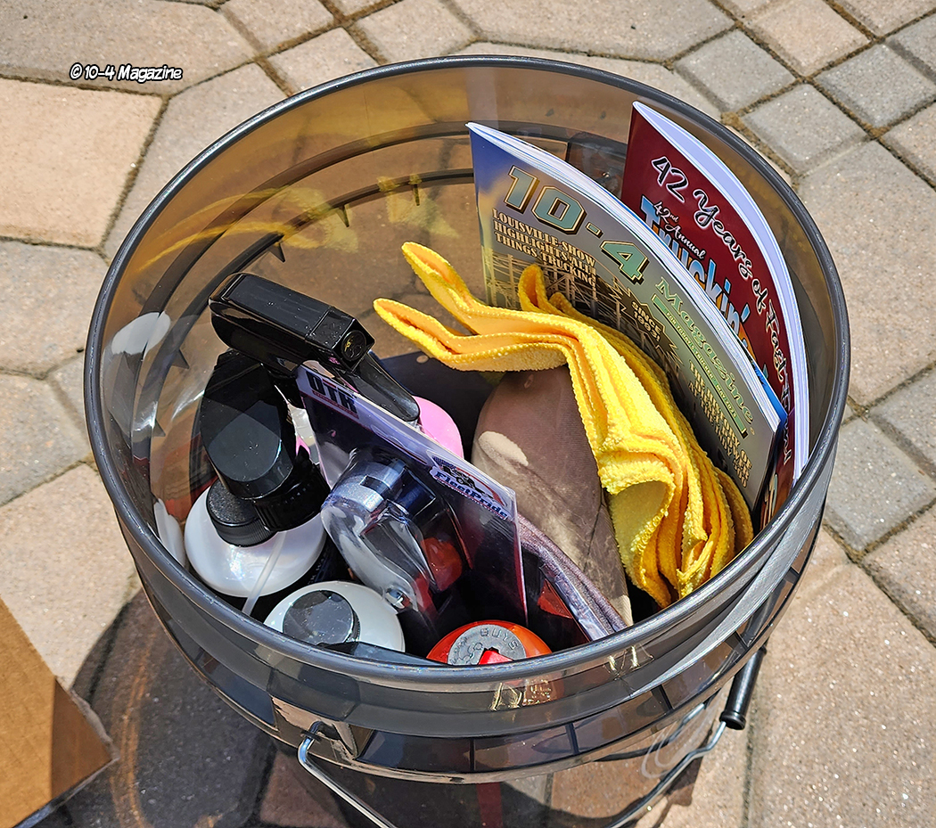 We couldn’t have asked for better weather, amazing trucks, and wonderful people during our two-day event.  I flew into California on Wednesday, April 26, and by Friday, around 12 of us were busy with the preparations, including the assembly line we created to get all the goodies into the 200 Bonus Buckets (with an estimated value of $175 each).  For donating the items, a heartfelt thanks from the show goes out to 10-4 Magazine, Stay Loaded Apparel, Rockwood Products, Time 2 Shine, Chemical Guys, Renegade Products, Zephyr Polishes, A&L Truck Supply, Sic Rigz, FleetPride, Rick Nay Insurance and 4 State Trucks.