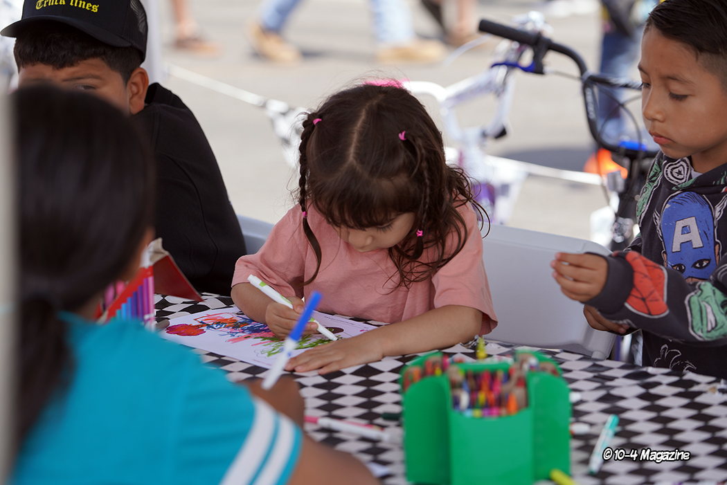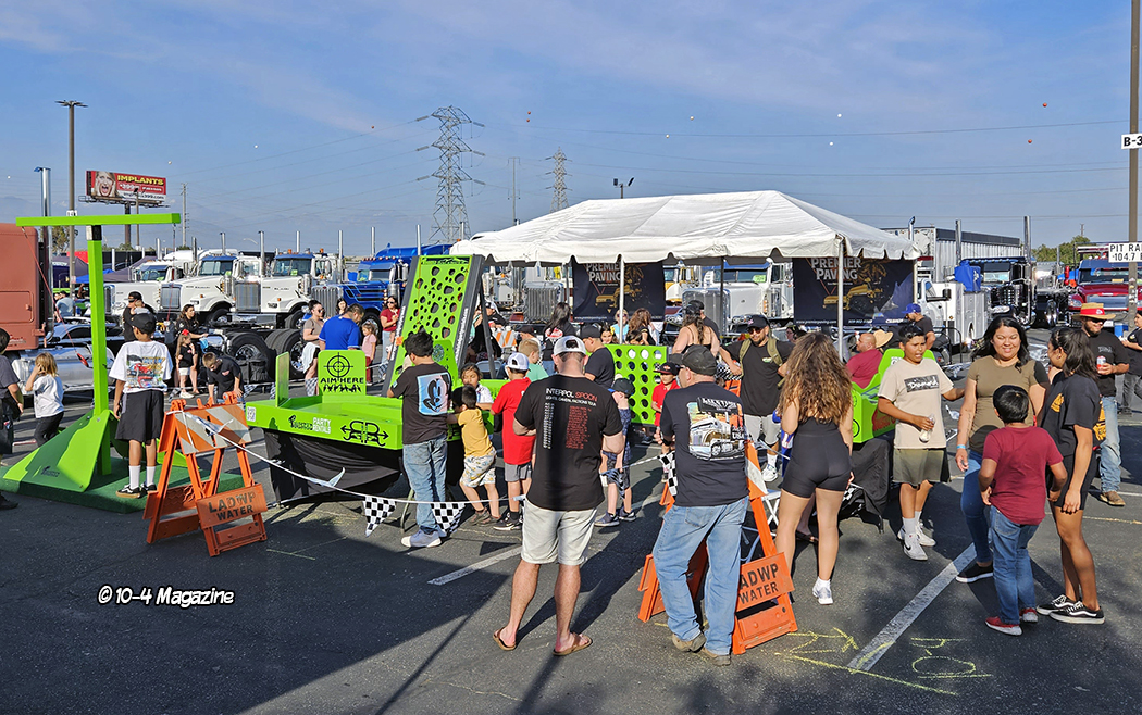 When 10-4 acquired the show in 2021, one of our initial goals was to have more activities for the kids.  Introducing a Kid’s Zone this year was a huge success!  We also provided coloring contests, giving participants the chance to win a bicycle, in their age group, on Saturday and Sunday.  Six bikes each day were up for grabs.  The life-sized games were donated by Christine & Matt Mulligan of Twisted Party Rentals, and the bicycles were donated by Premier Paving out of Ontario, CA.  Shoutout to Miss Flatbed Red for her amazing skills in providing the coloring pages, to Precision Auto Calibrations for providing additional funding for the Kid’s Zone, and Polly Kasper for overseeing the “zone” for the entire weekend.