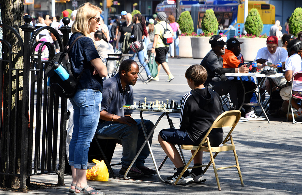 After 20 years since leaving New York for California, we are back again, and to the world famous Manhattan, no less.  We came for our son Konrad (14) to play street chess, as “The Big Apple” is the most active place to play this old game.  Chess masters of all levels like to sit in the parks, waiting for other locals or tourists, willing to play in exchange for a $5 to $10 donation.  We traveled on the subway, as cars are so inconvenient to have here, trying not to bump into the thousands of people walking the streets at a fast pace.  People from all over the world are here – even if you are good at guessing accents, you still stand no chance at guessing right.  And everyone is not only dressed up, but also nice and welcoming!  How in the world can they do EVERYHING so differently, yet still deliver such a nice outcome?  Then, all of the sudden, this beautiful 359 Pete emerges from the busy background, and in a split second, it put my mind at rest.  We (truckers) deliver to these amazing people.  He had building materials on his flatbed, to keep the roof over their kids, and we had just delivered a load of beef, to keep them all fed.  We are all part of this amazing architectural success called the United States of America!  Seeing Manhattan helps us to understand and keeps the Spirit of THIS American Trucker alive!!