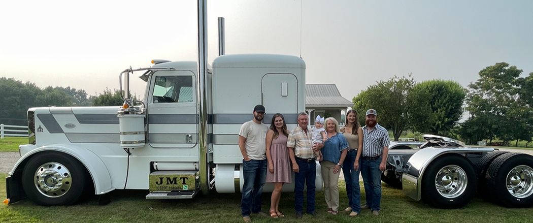 We featured James in December of 2019 with his “plain and simple” black Peterbilt, which he still owns.  It was his first black truck – all the previous ones were yellow.  And since the first wash job at home with his wife Charlotte helping, he has been second guessing that choice.  James and Charlotte wash the truck together, and with a black truck in the hot sun you have to be speedy at rinsing it off.  James joked that Miss Charlotte has one speed rinsing, and if you don’t like it, she has one slower!  So, when it came time to order this last 389, James opted for white with his favorite stripe scheme.  When picking the colors, he wanted to match the truck to his trailer best he could, so we took some paint chips out and found a pretty close match.