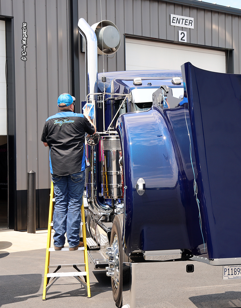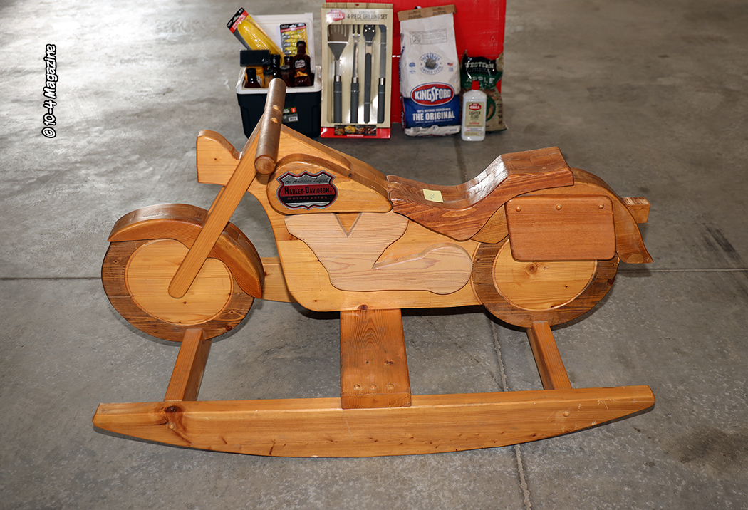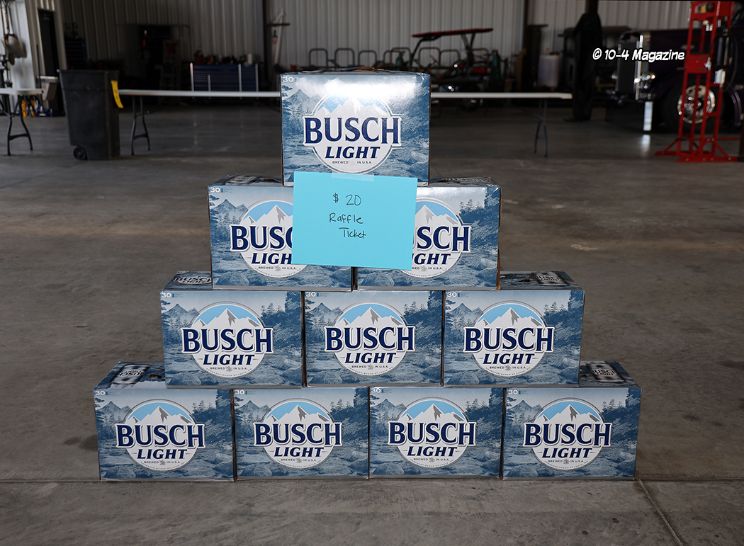 Prior to the scheduled Saturday evening activities of the driver’s dinner, fireworks, and music, one of the most memorable and significant activities took place in the C&J truck shop. It was the Dirty Business charity auction for items donated by many contributors who provided several cool and unique items for sale. Justin Steward was the live auctioneer who added color, energy, and humor to the entire event. It took an hour and a half to get everything auctioned off. There was everything from polished stainless half fenders to a large selection of gift baskets, Yeti coolers, tickets for various football games, 12 packs of beer, truck parts, and yes, even a custom-made handgun and rifle.