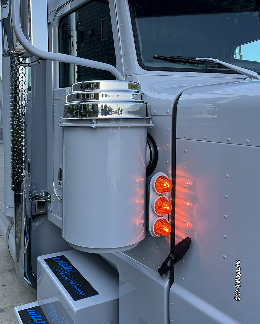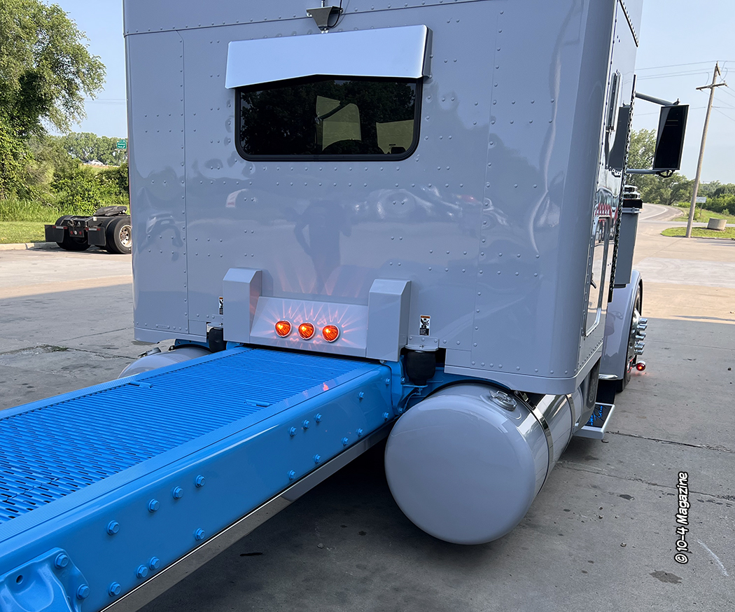 This new 2023 Peterbilt 389 is the last truck to be done at NRC (No Rush Customs). I wanted to thank Tyler for all the extra efforts and friendship over the years and congratulate Tyler (pictured above with Kyle) on his new role as Service Manager at Kansas City Peterbilt. This truck is bad, with lots of cool items – almost too many to list – but here’s a few things.