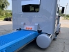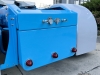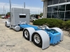 Customized to a flat roof cab, the Peterbilt features a J. Ferrell air ride kit, a special bumper from Valley Chrome, a 379 grill, mirror arms, and single square headlights from 12 Ga. Customs, one of my body drop kits, an RLK visor, and all glass lights. It also has strapless breathers, skirts by Bub, painted battery boxes, fuel, and air tanks, a painted Merritt flush deck plate with one of my hidden toolboxes, Shift fenders, and a custom rear tail panel. Inside, the truck has a gray and blue button-tuck interior from Spare Time Fab, a painted dash, and sweet carpet.