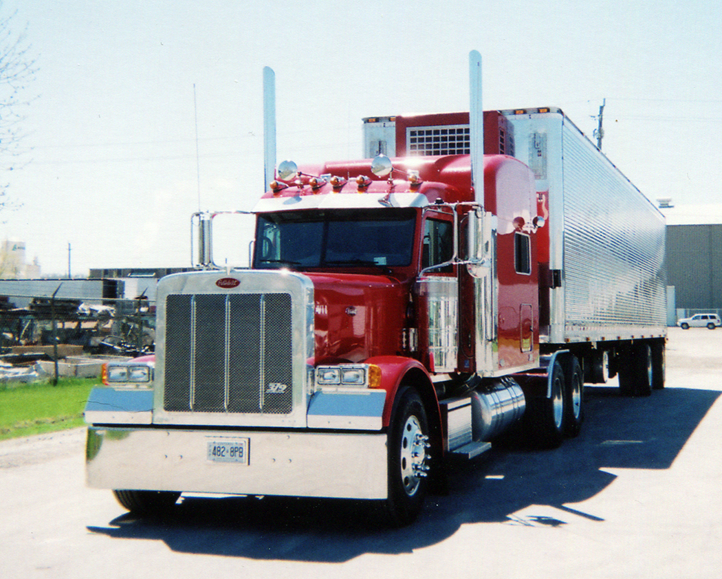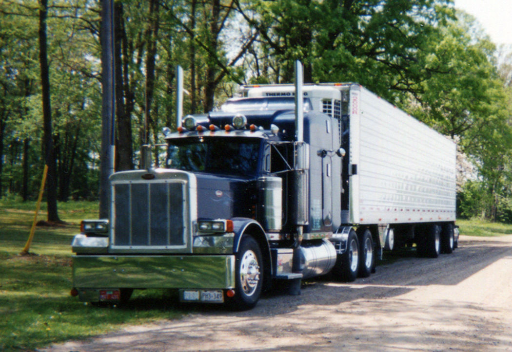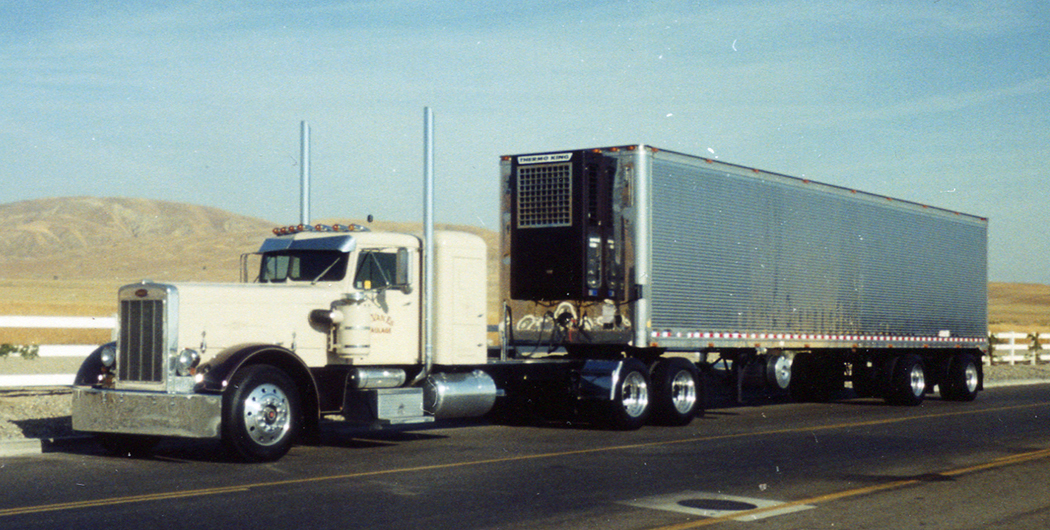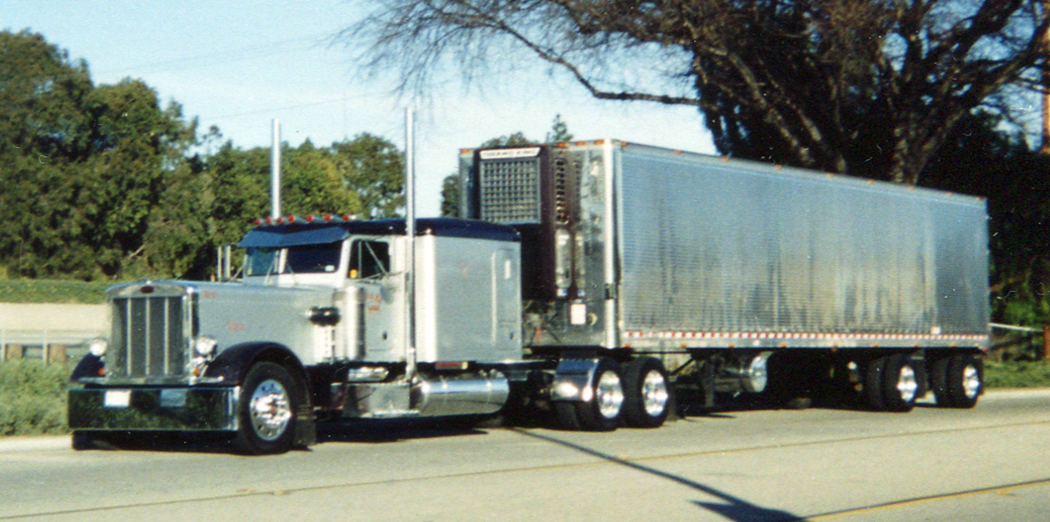 She delivered to Long Beach, CA often and, after this meeting, she would occasionally see Jesse at a light in one of his cool old low rider cars and he would always give her the thumbs up when he saw her.  Her favorite trucks over the years were “Pinocchio” – a custom 1987 359 Peterbilt with a 147” hood and a 320” wheelbase pulling a 48’ stainless spread-axle reefer, a 1957 Peterbilt 281 with a butterfly hood and a “coffin” bunk with a crawl through hole, and a 2007 Peterbilt 379 Legacy (#417 of 1,000).